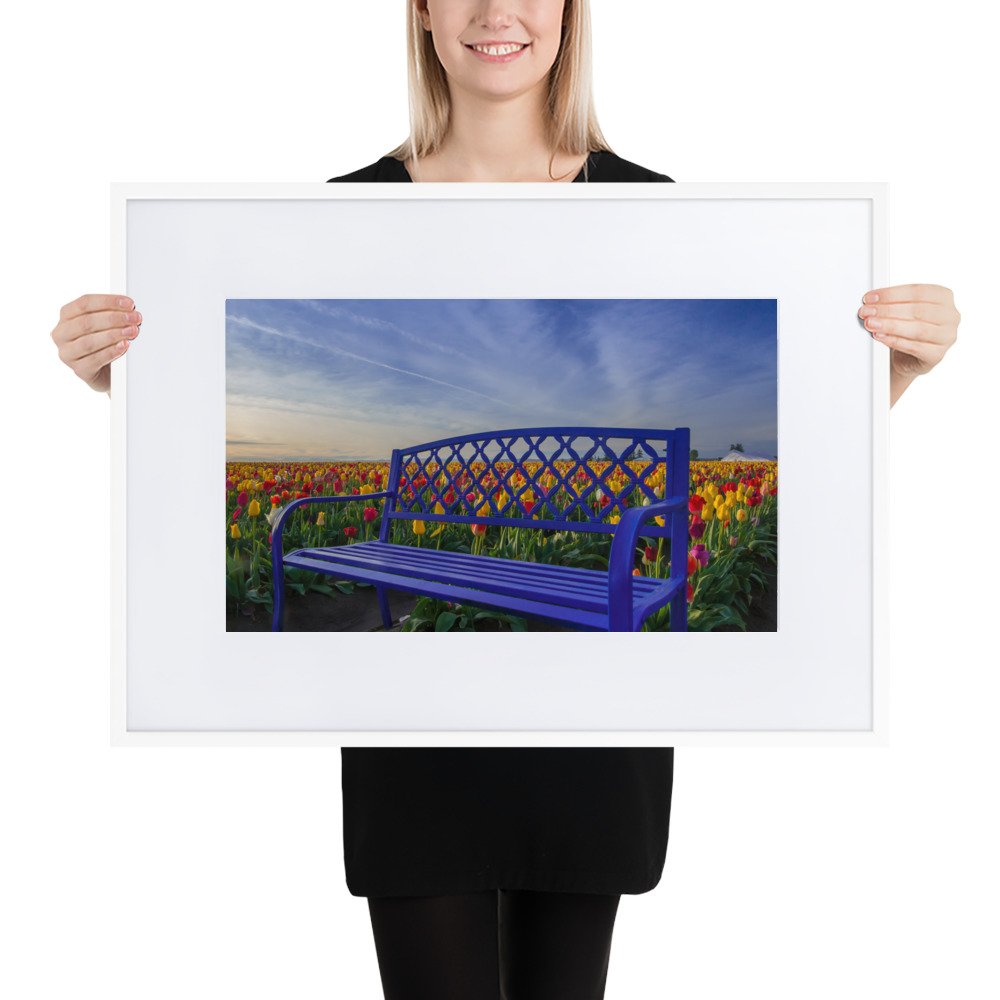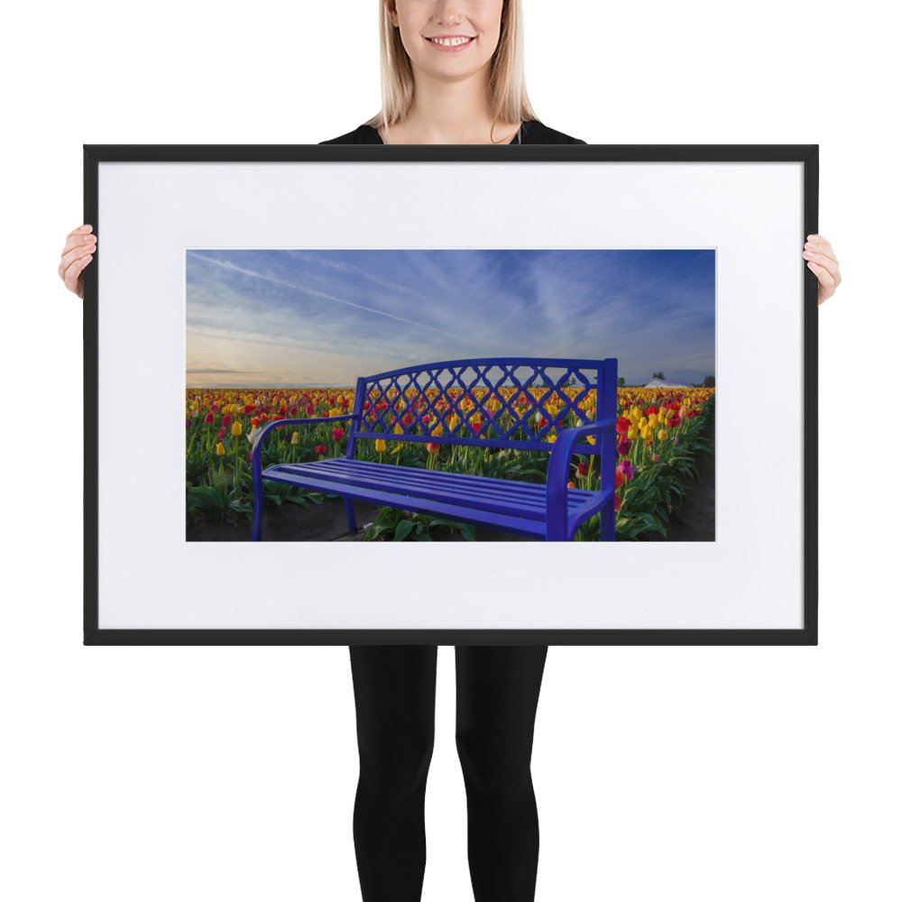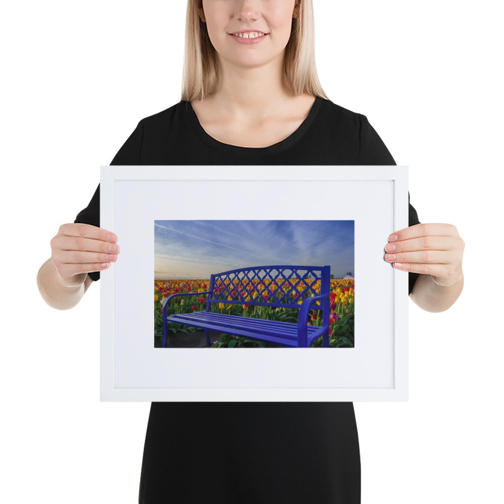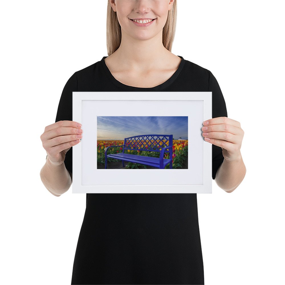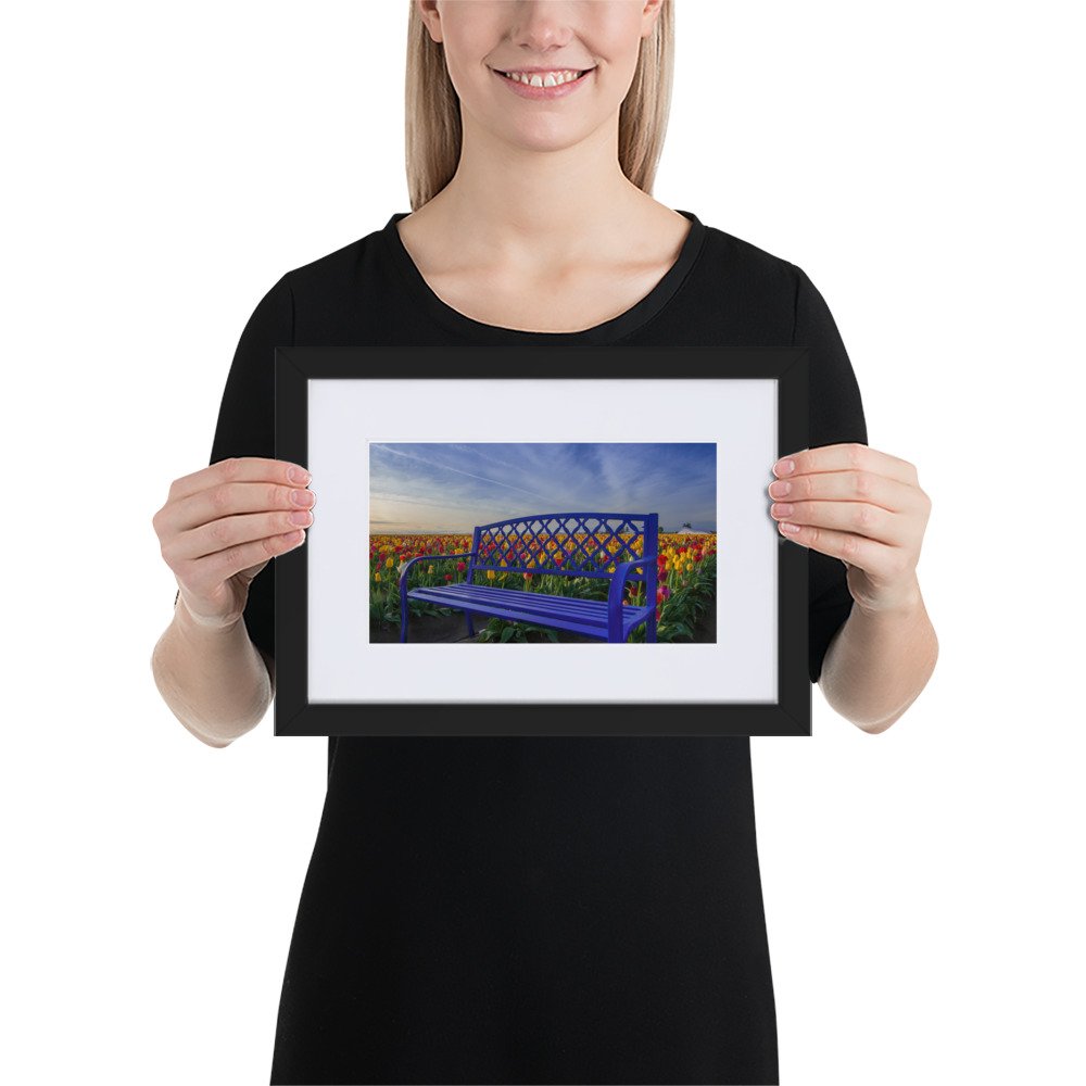 Bench among Tulips – Matte Paper Framed Poster With Mat (cm)