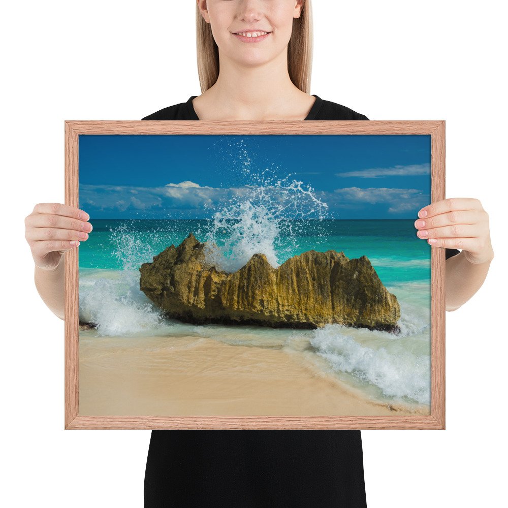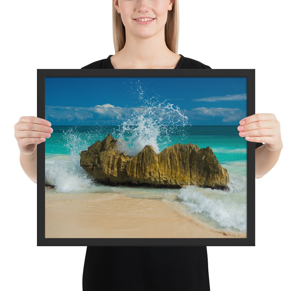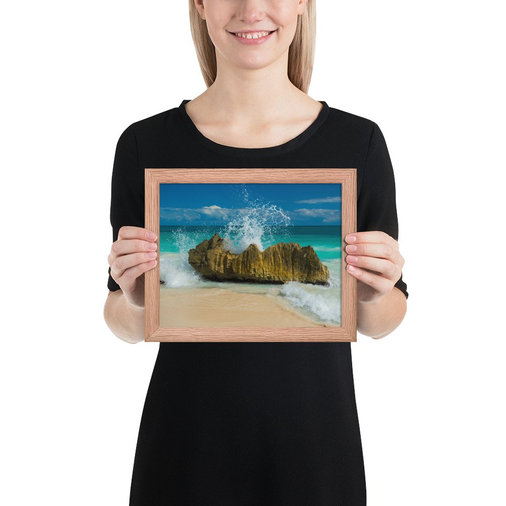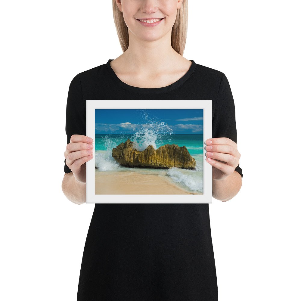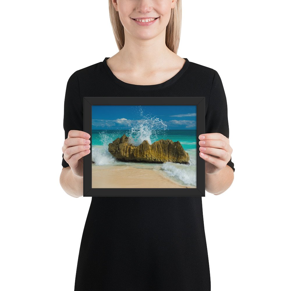Tropical Waves on Rocks-Premium Luster Photo Paper Framed Poster (in)