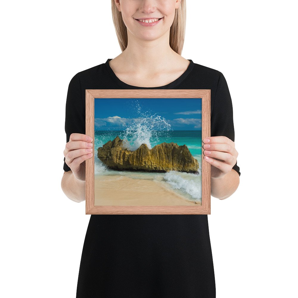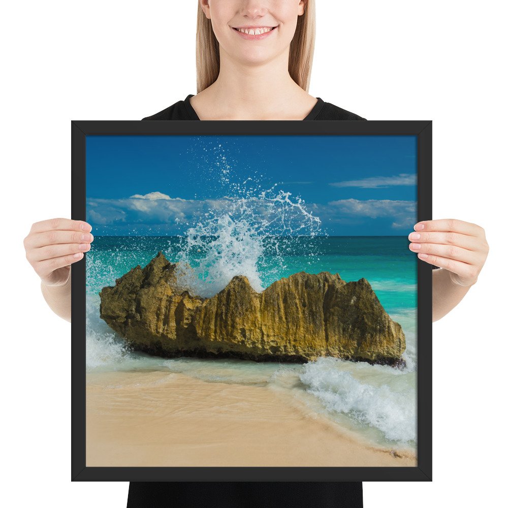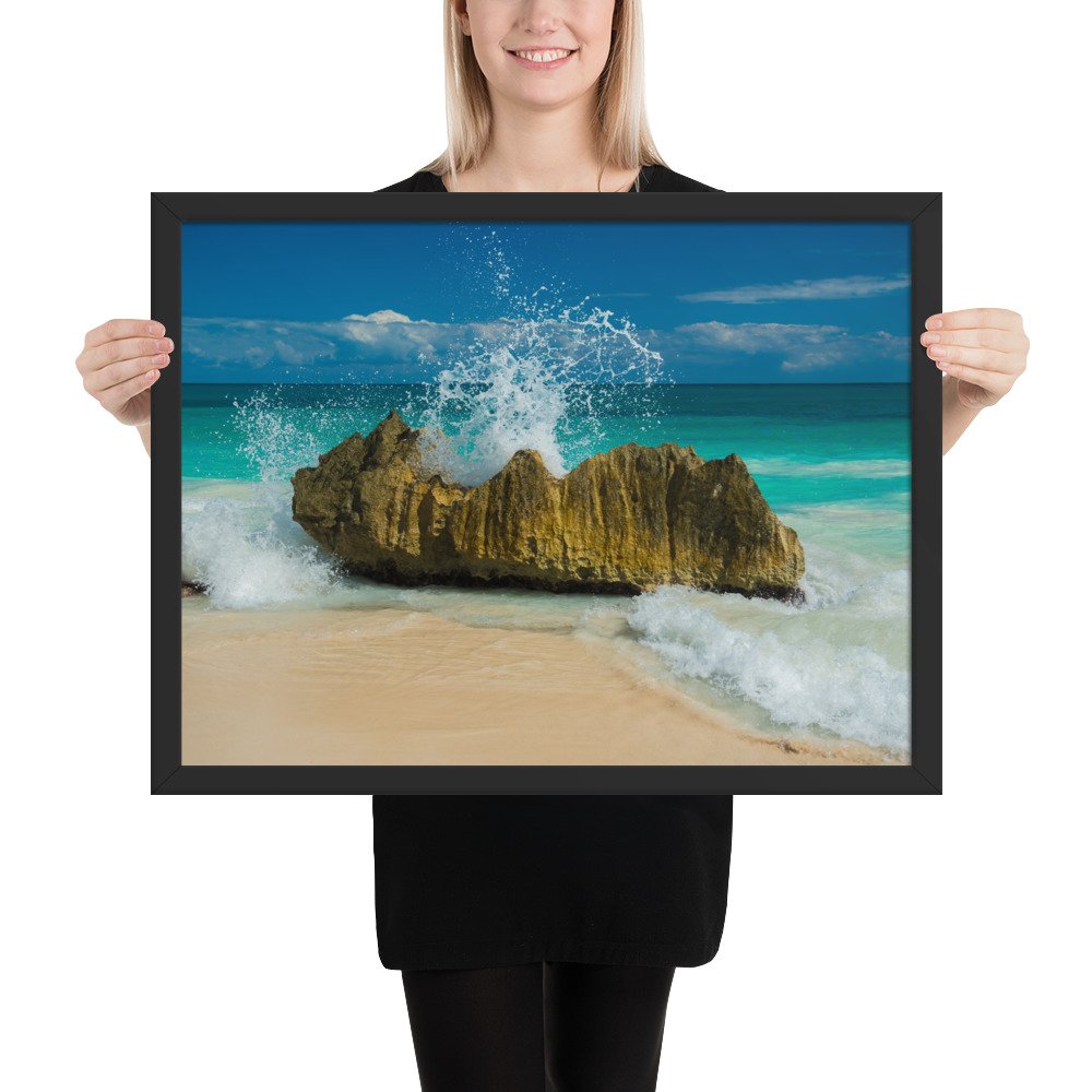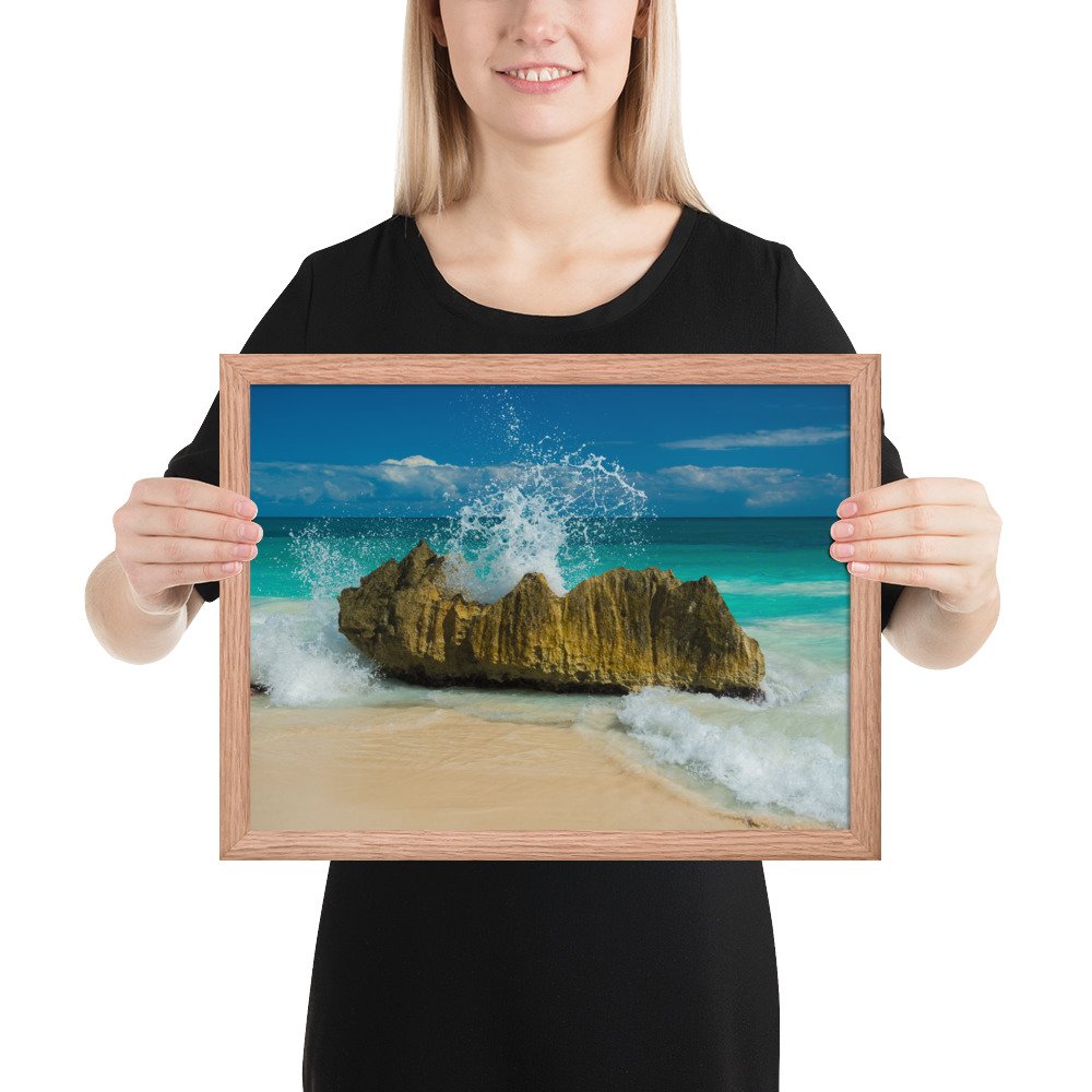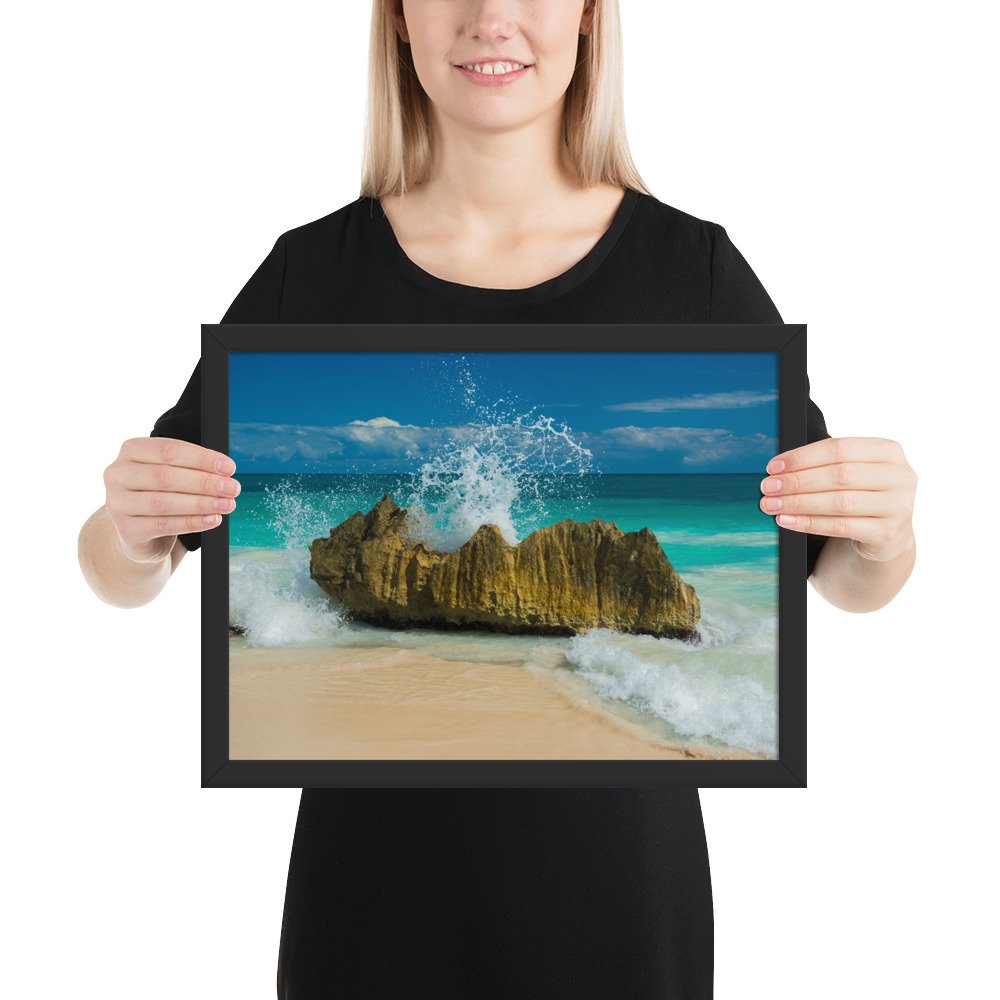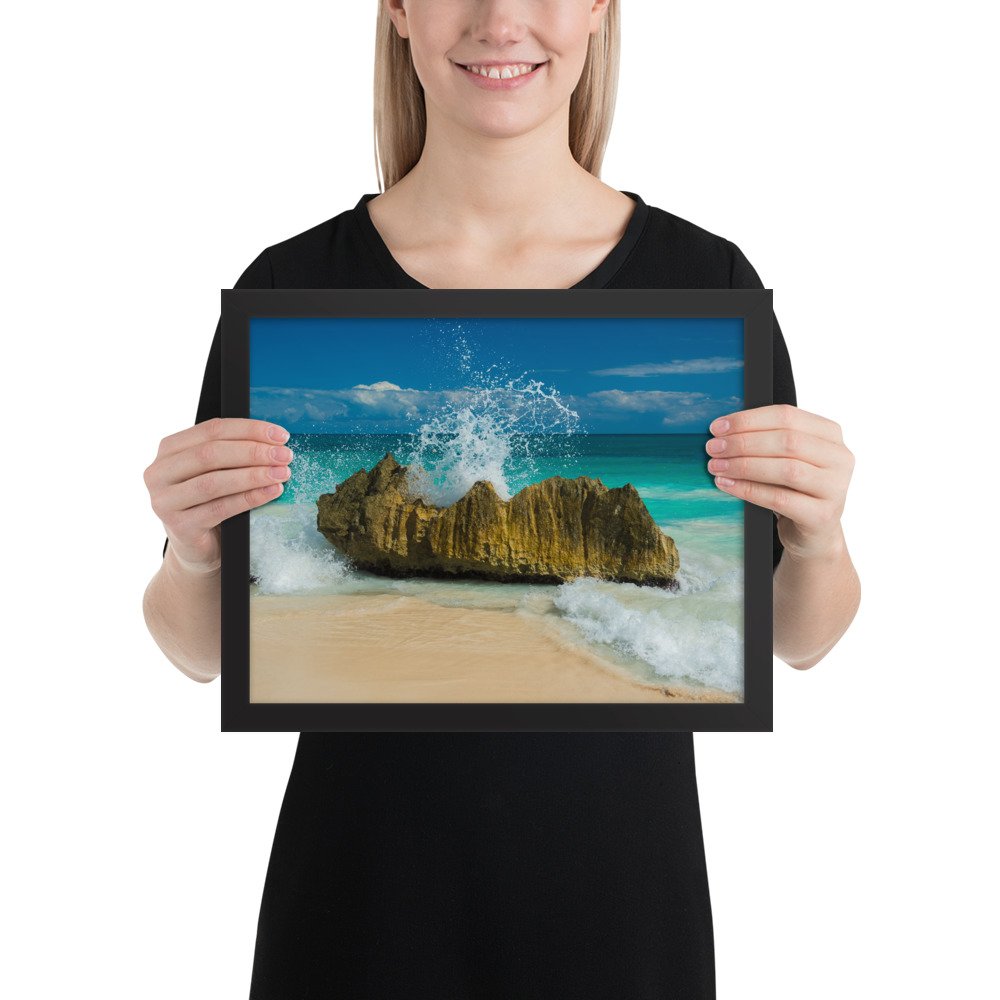 Tropical Waves on Rocks-Premium Luster Photo Paper Framed Poster (in)
