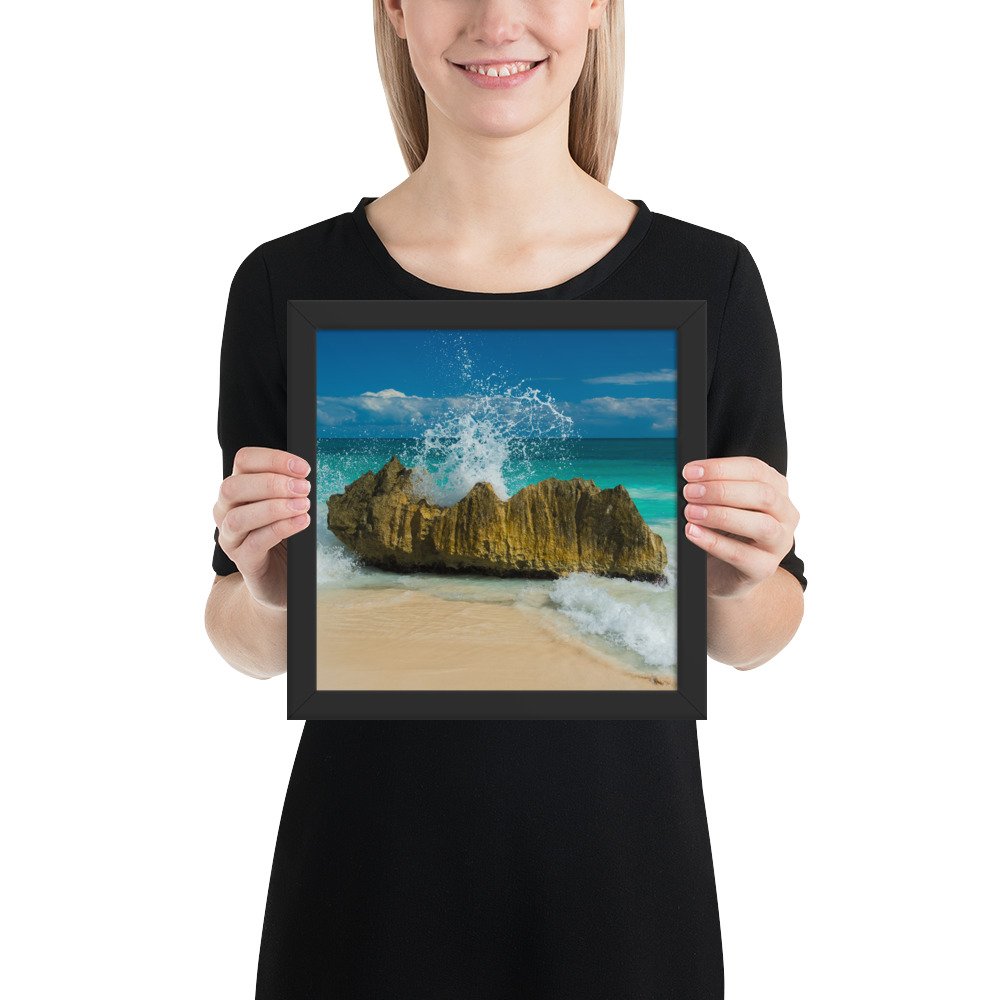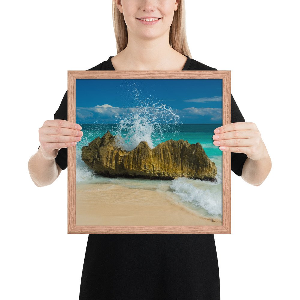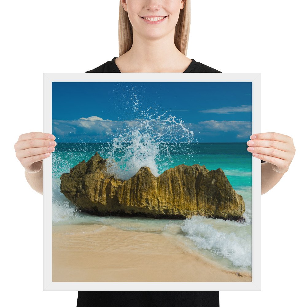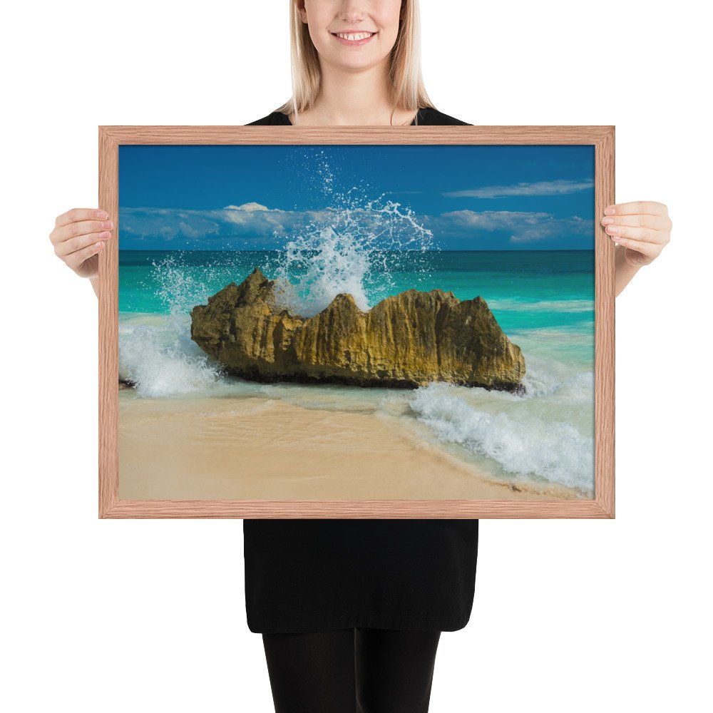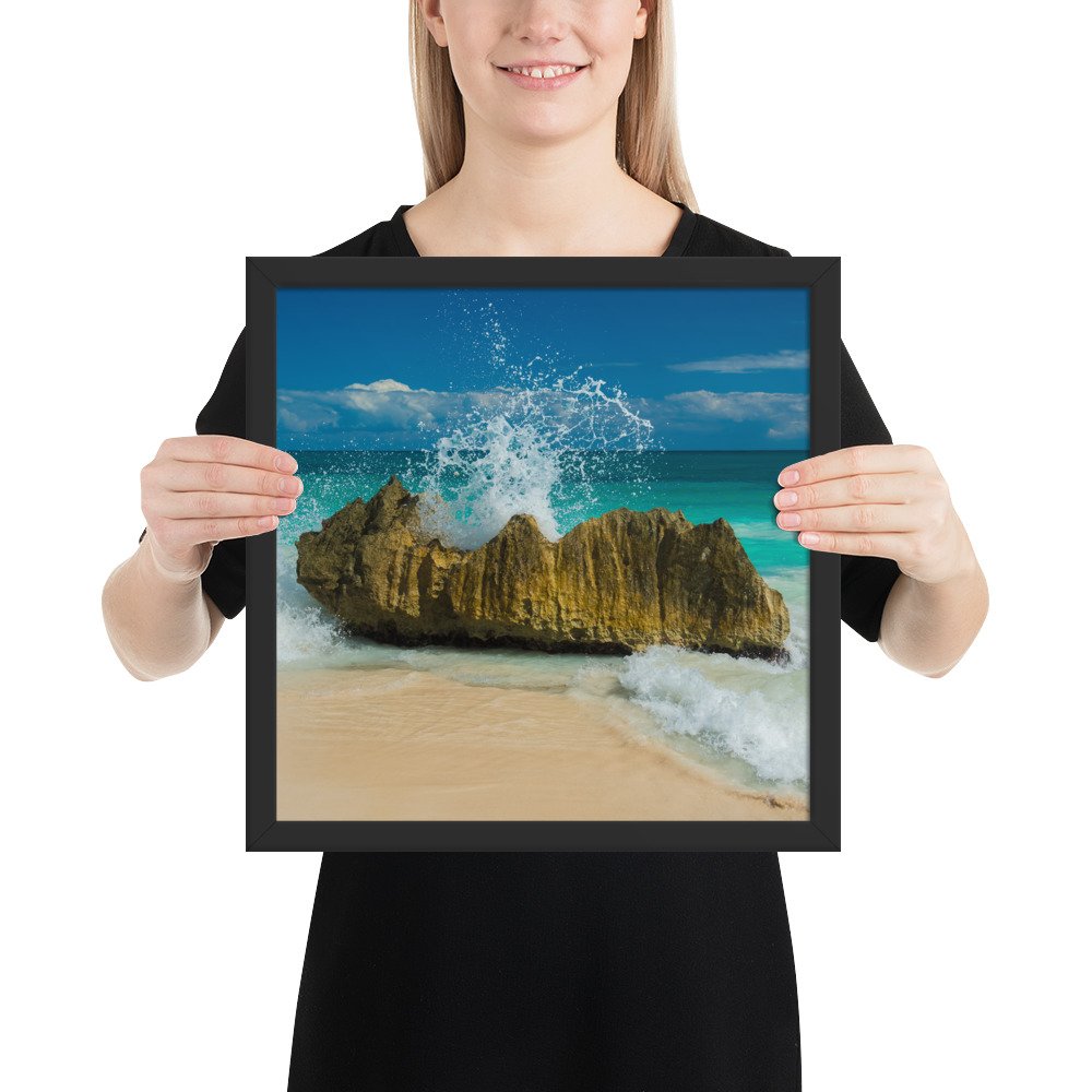 Tropical Waves on Rocks-Premium Luster Photo Paper Framed Poster (in)