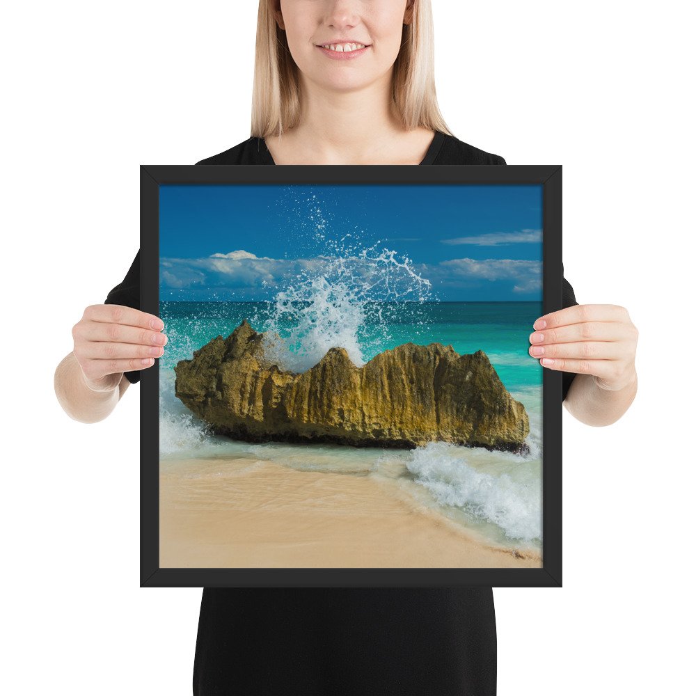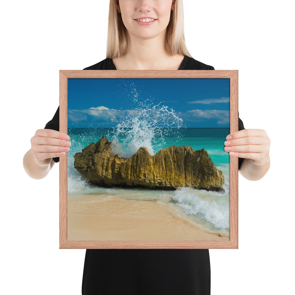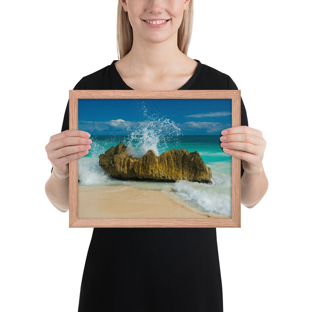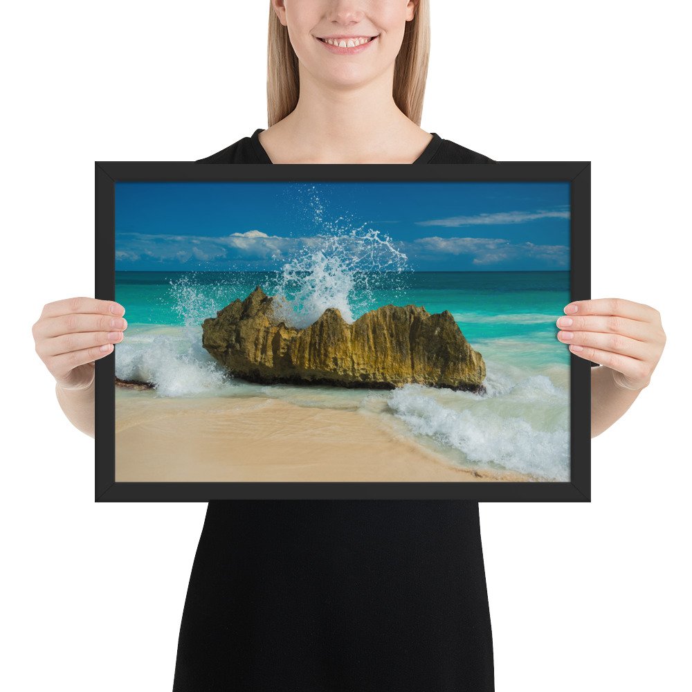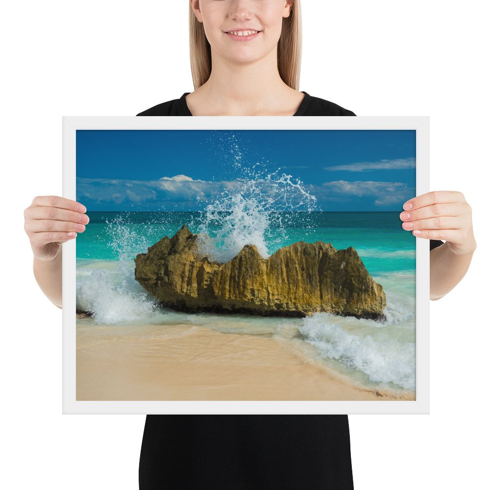 Tropical Waves on Rocks-Premium Luster Photo Paper Framed Poster (in)