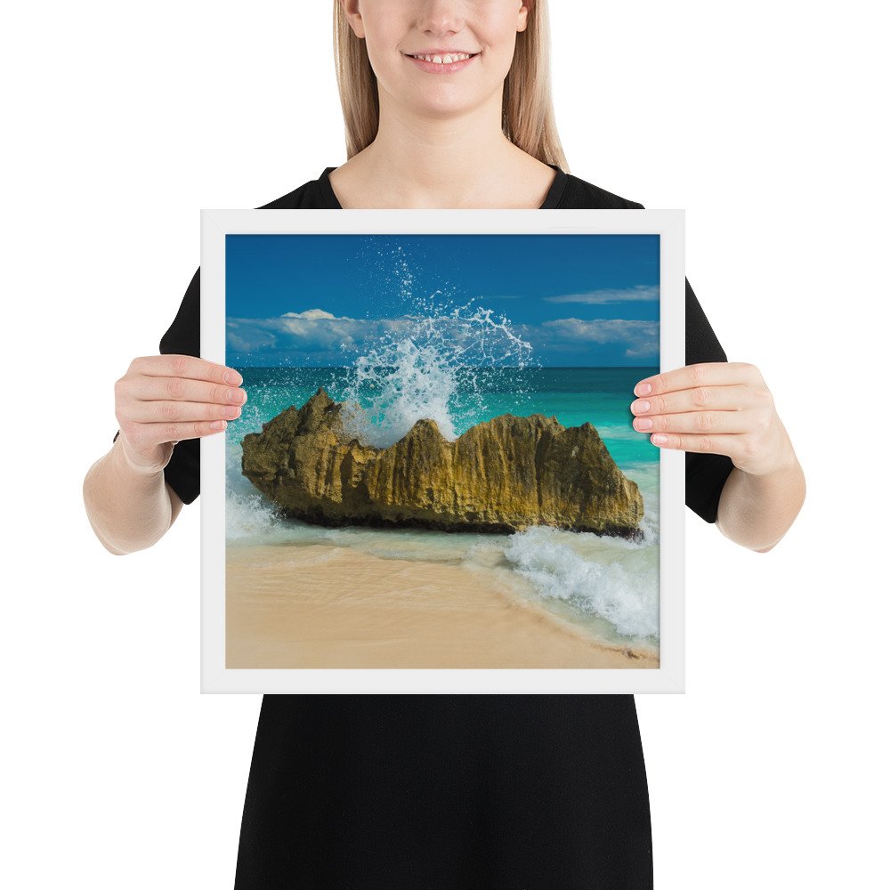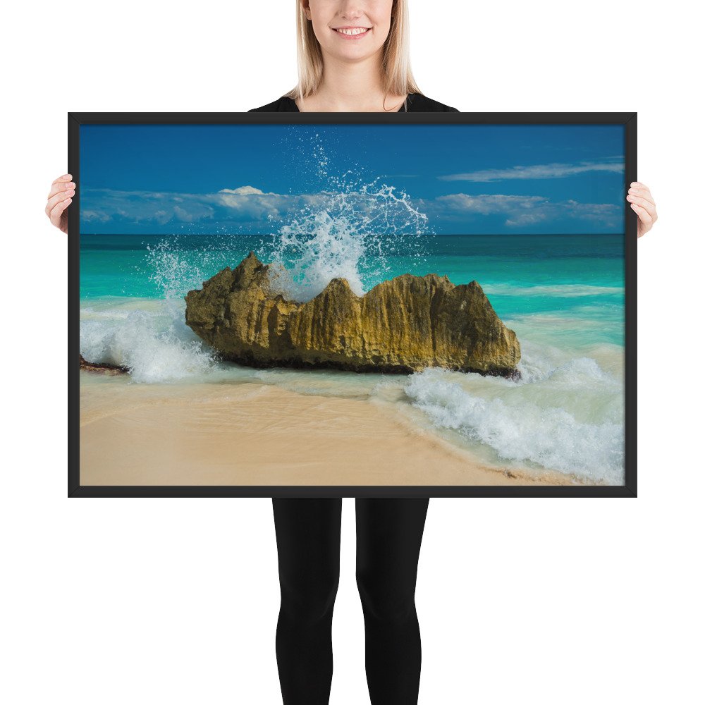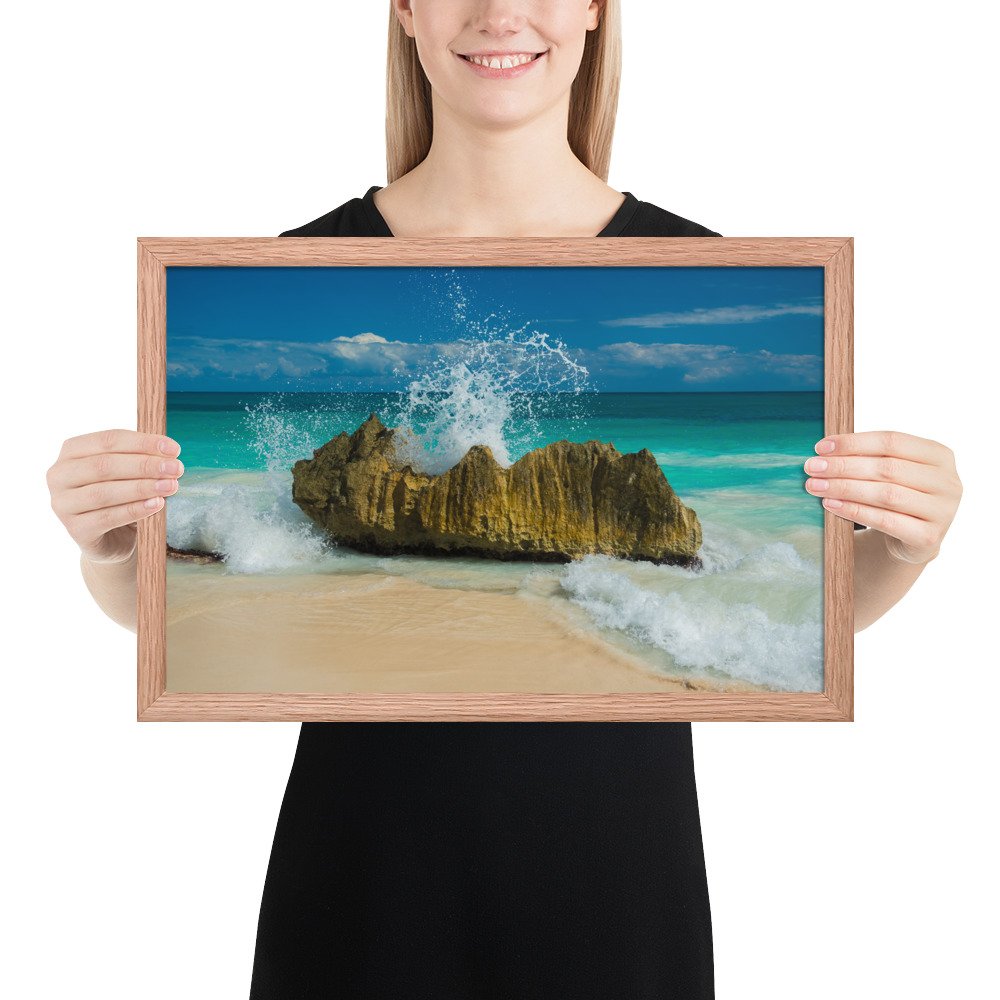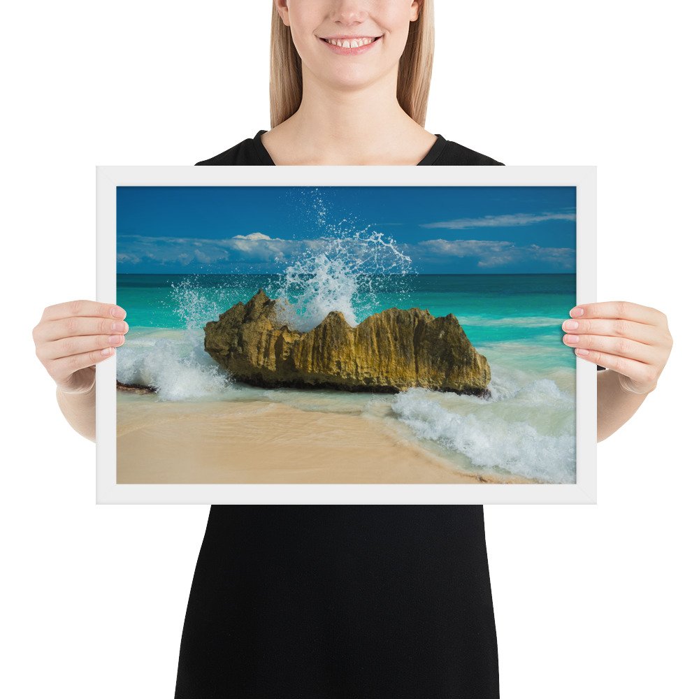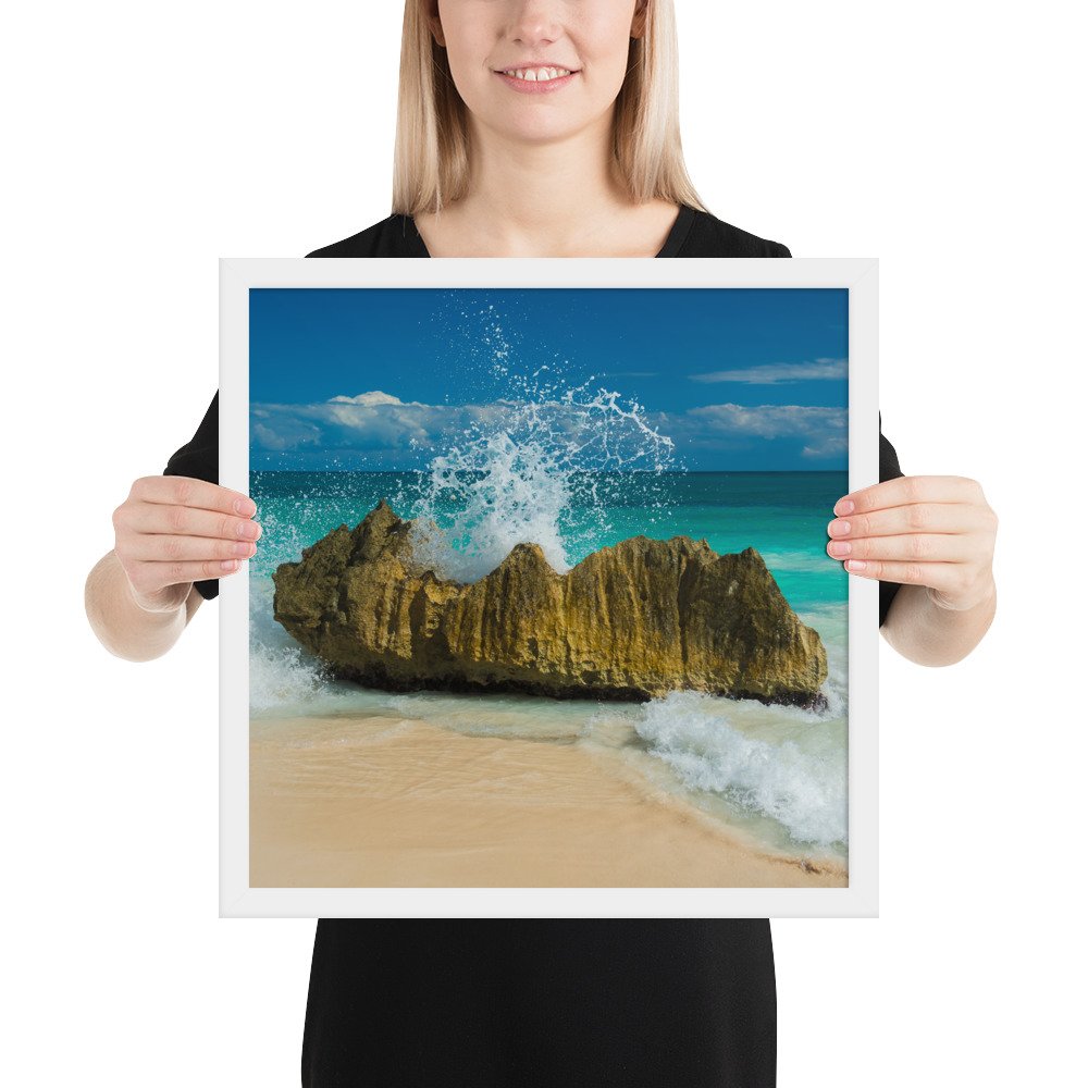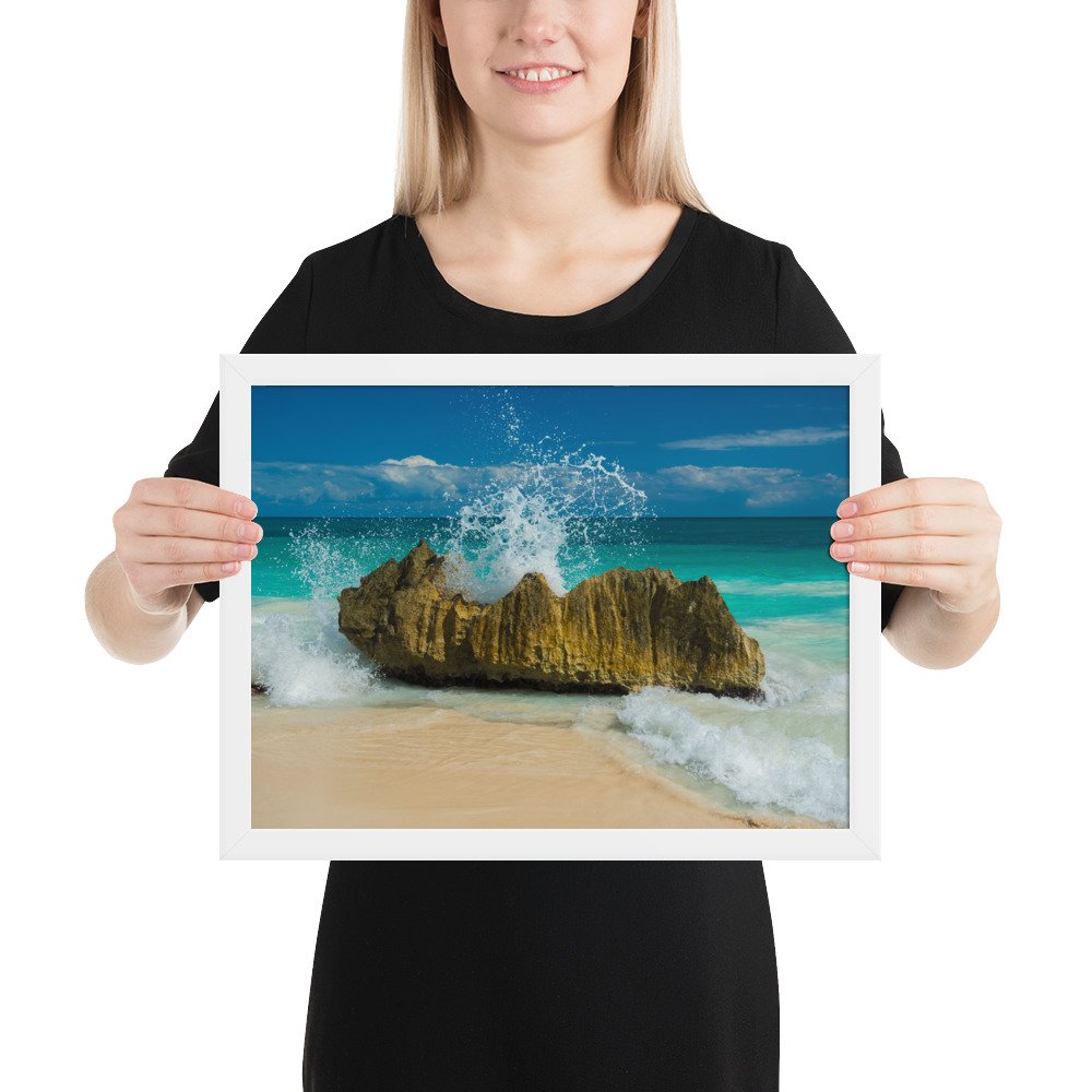 Tropical Waves on Rocks-Premium Luster Photo Paper Framed Poster (in)