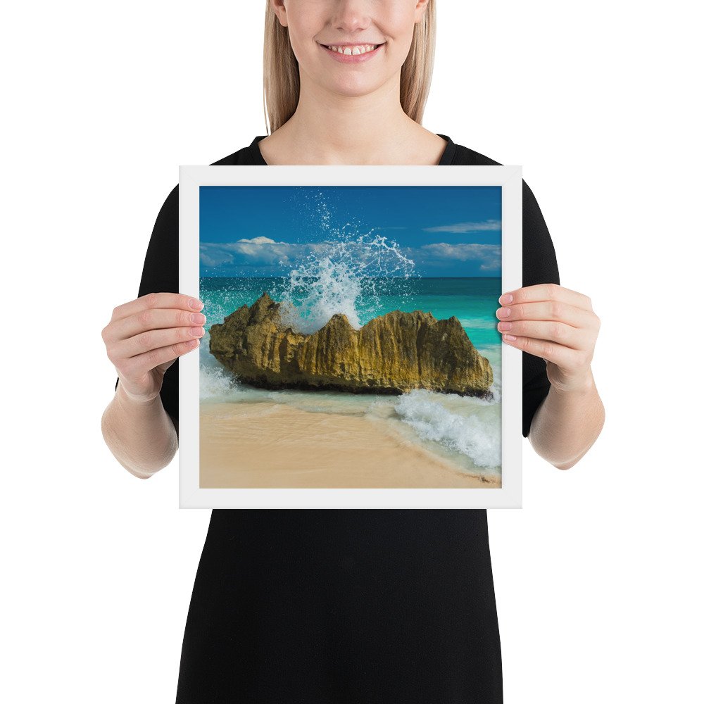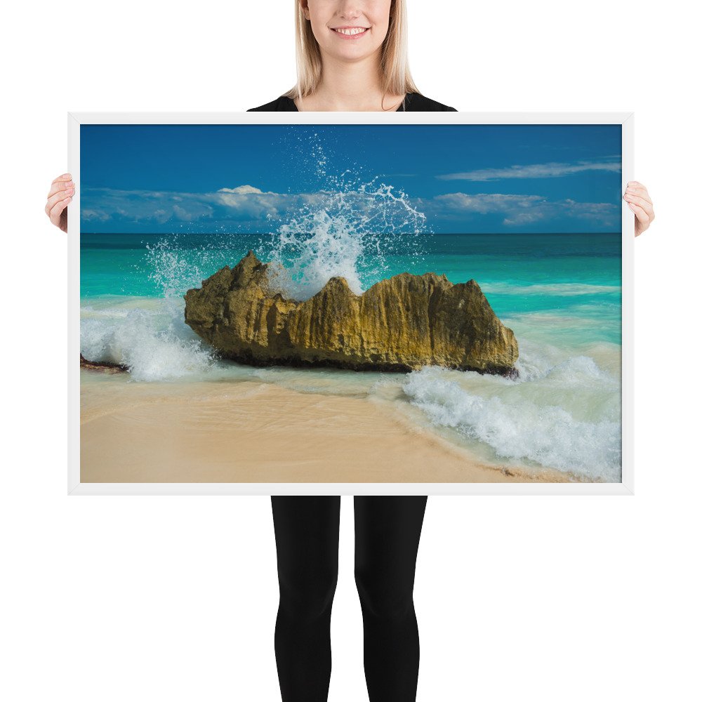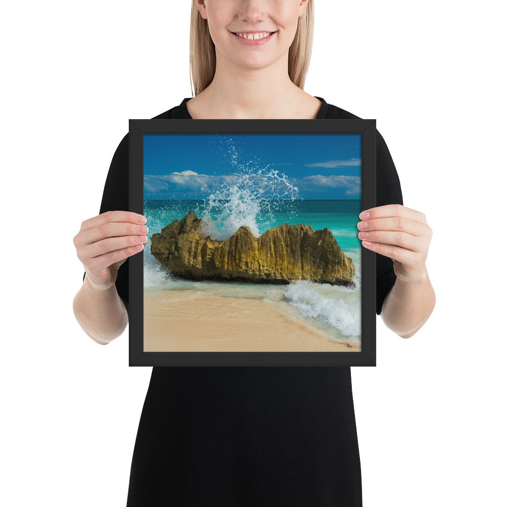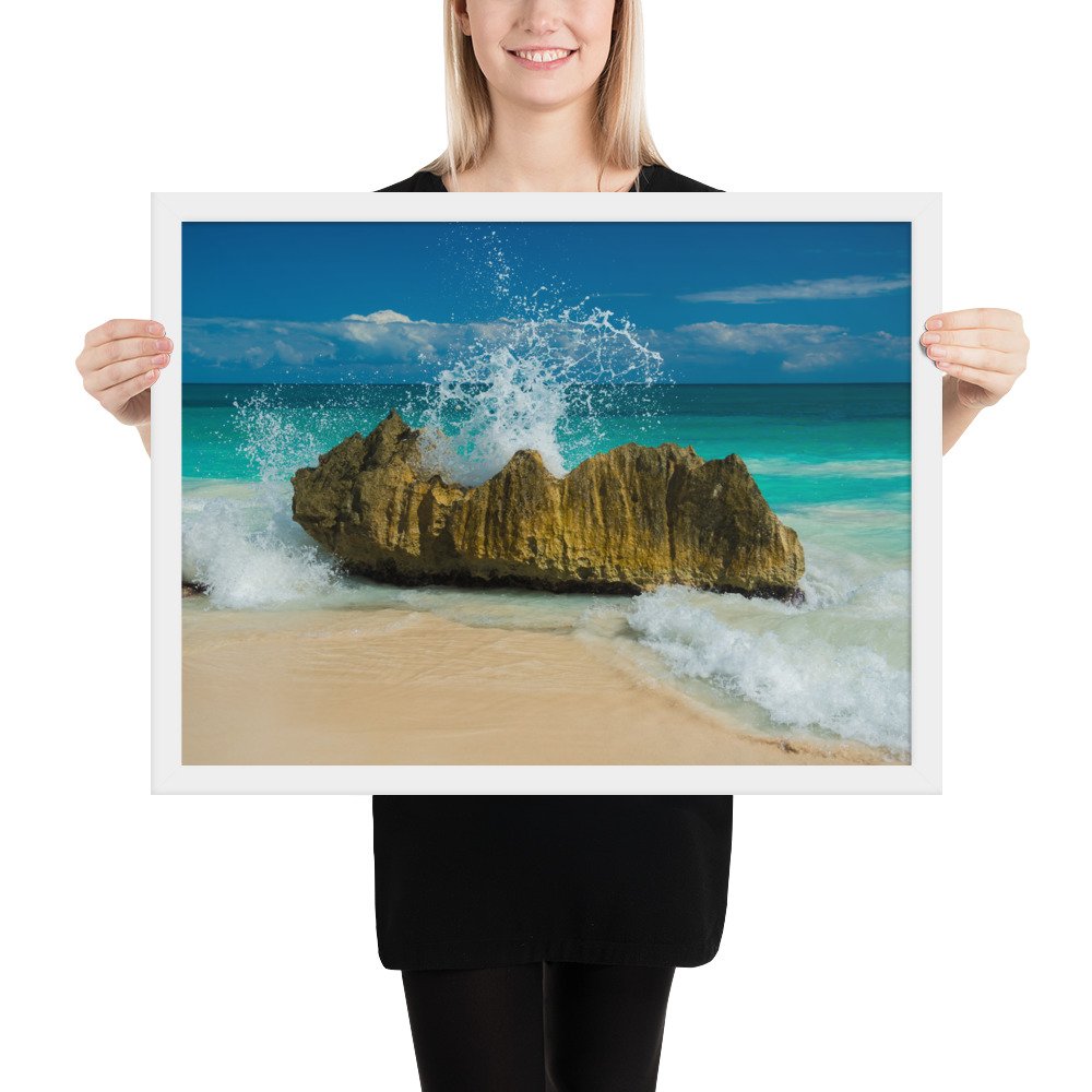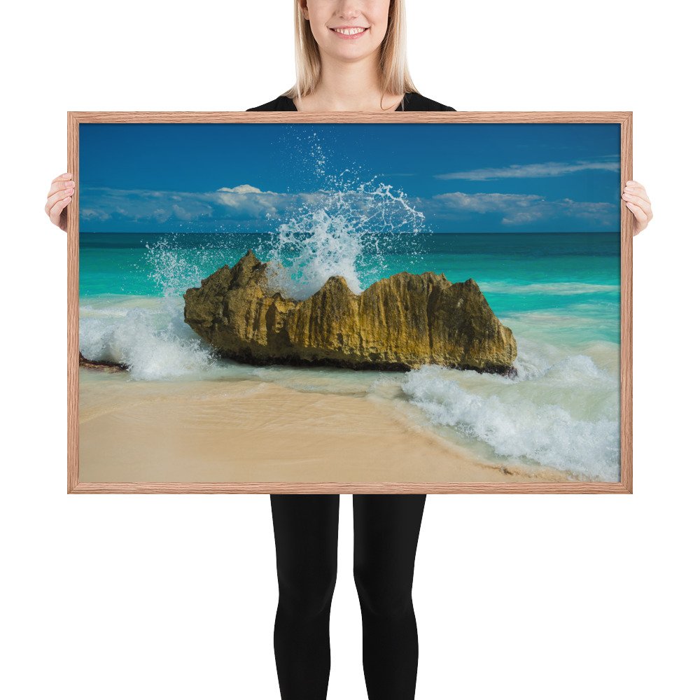 Tropical Waves on Rocks-Premium Luster Photo Paper Framed Poster (in)