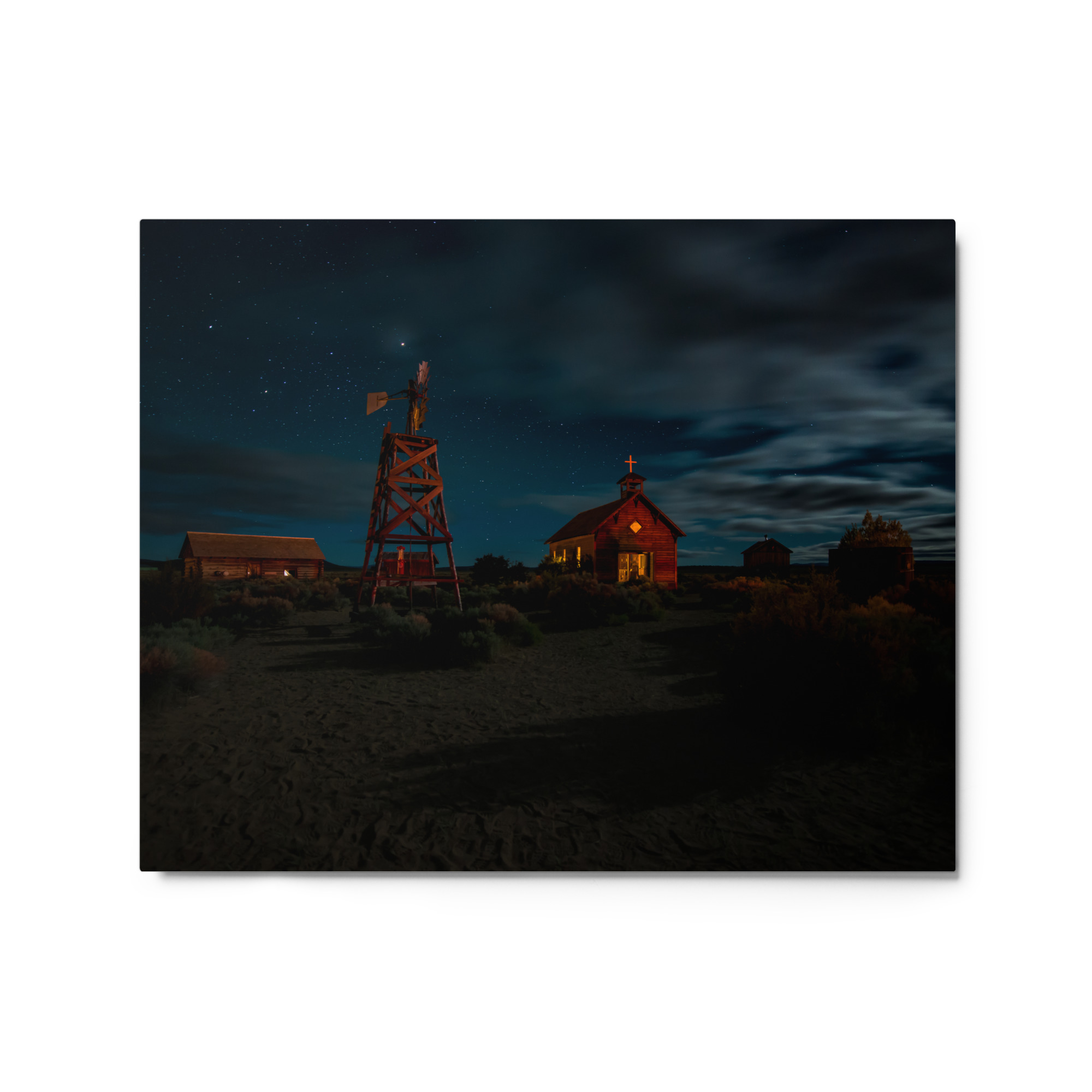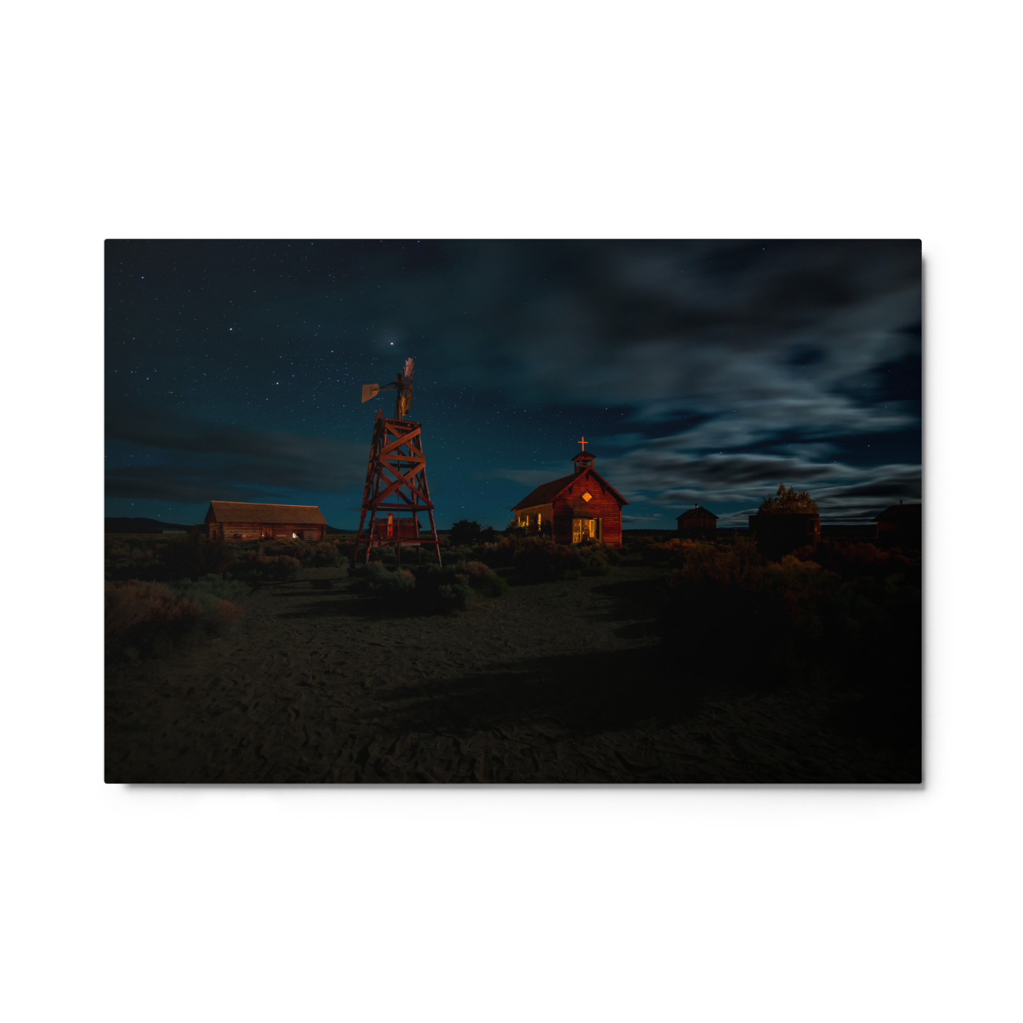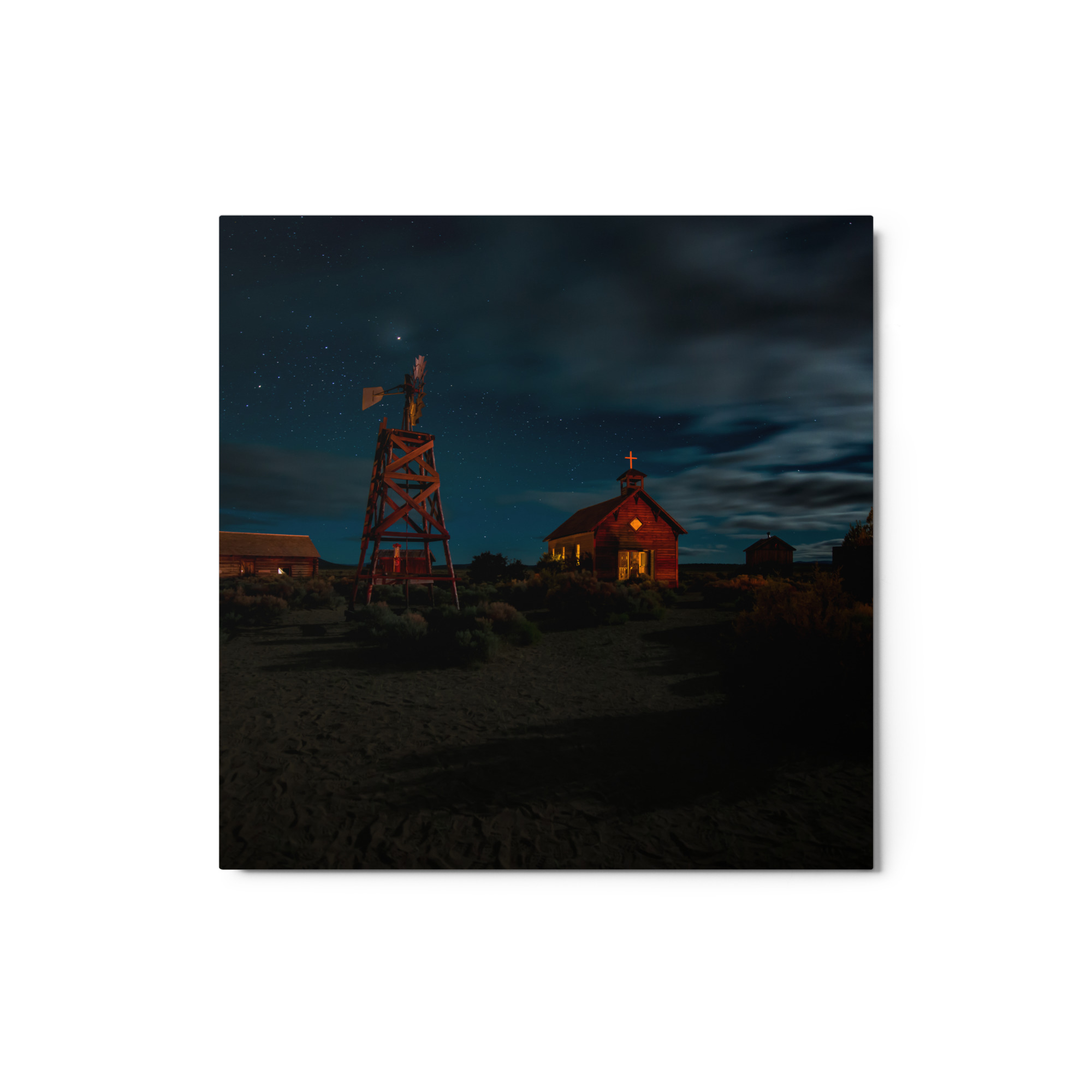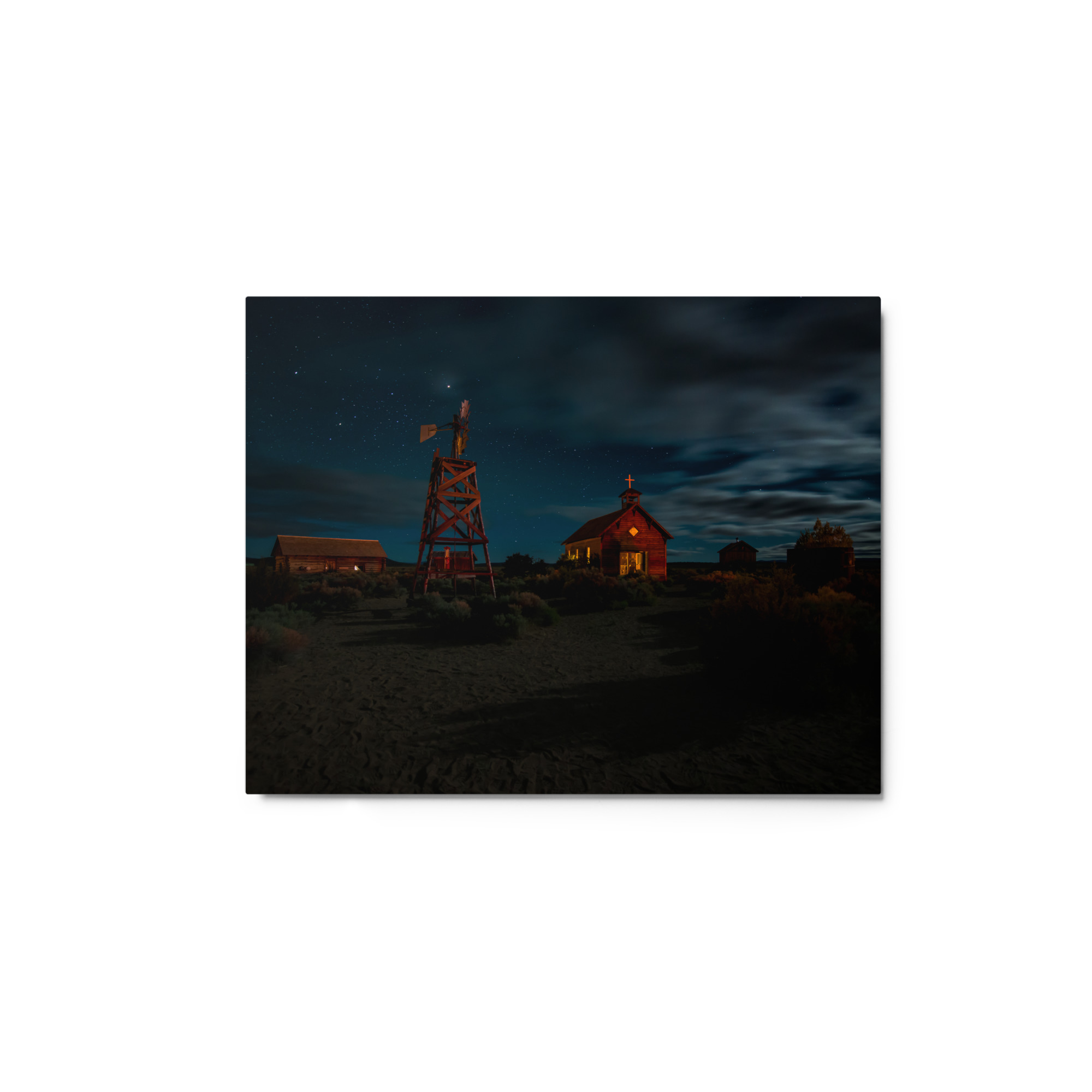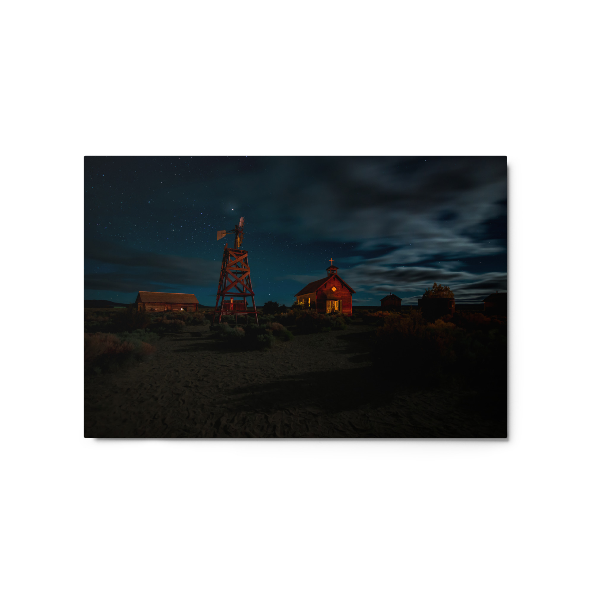 Categories: Glossy Metal Print, Starry Night Country Barn & Church