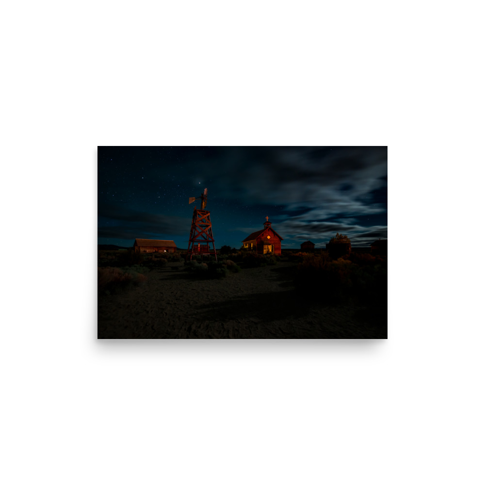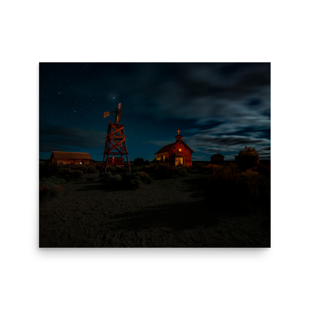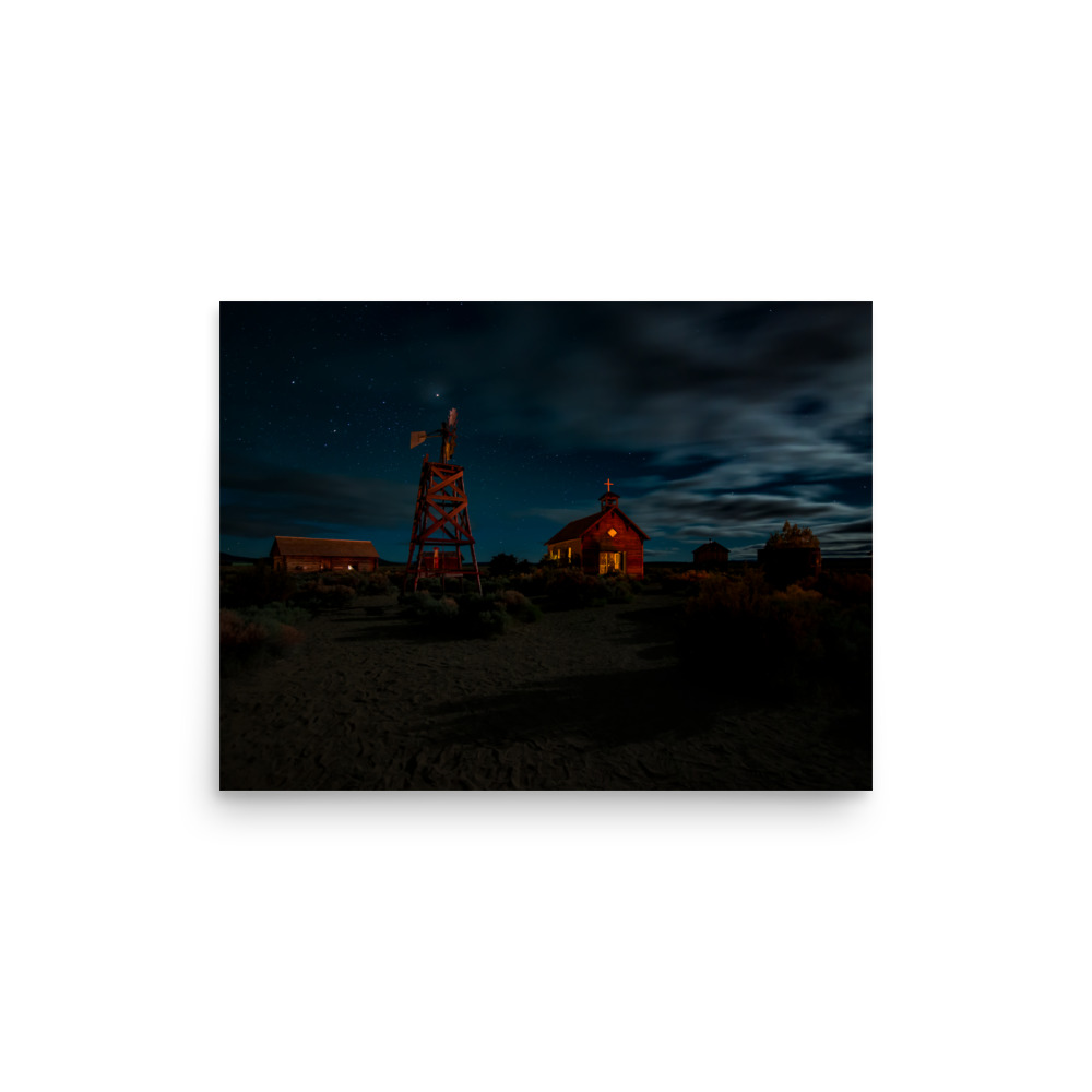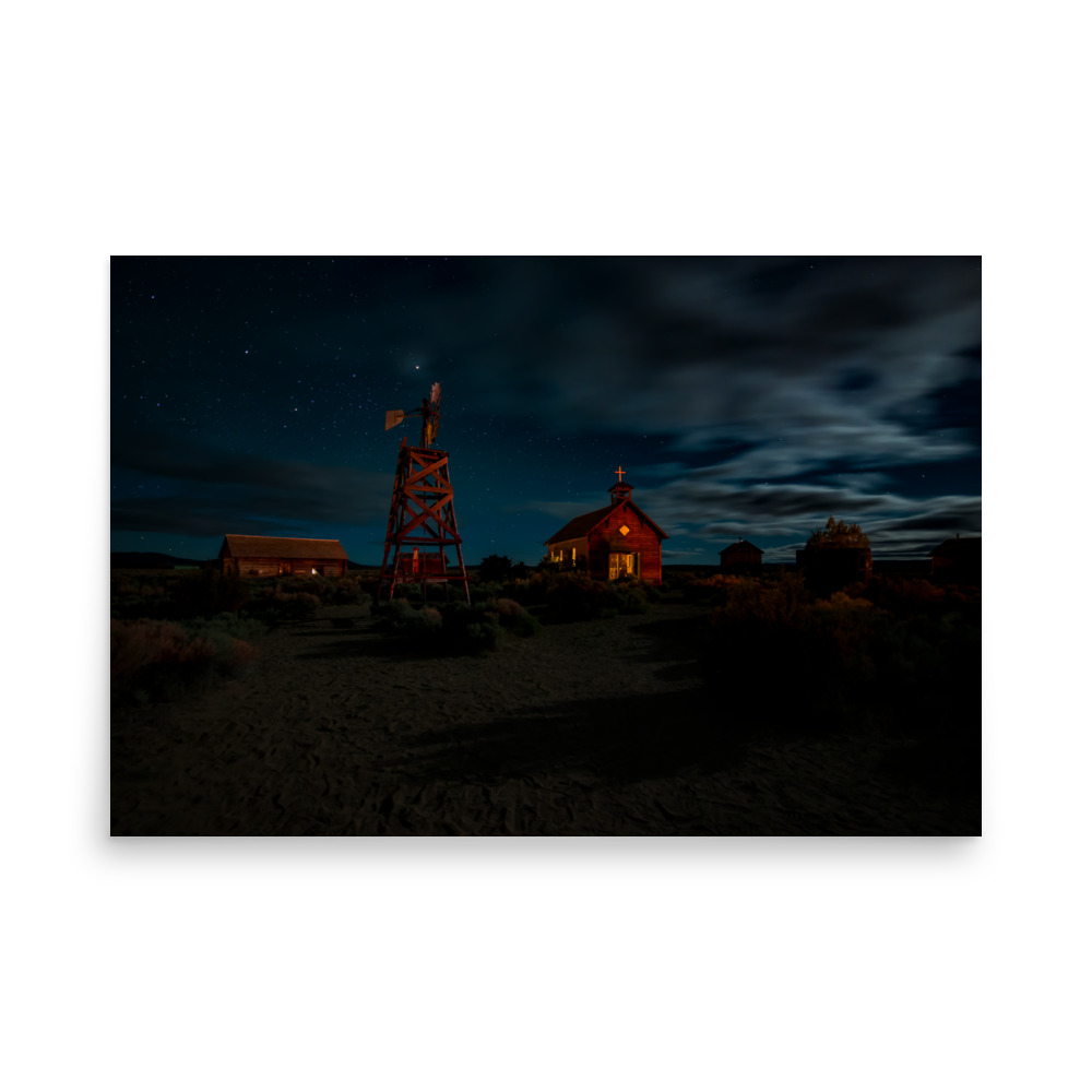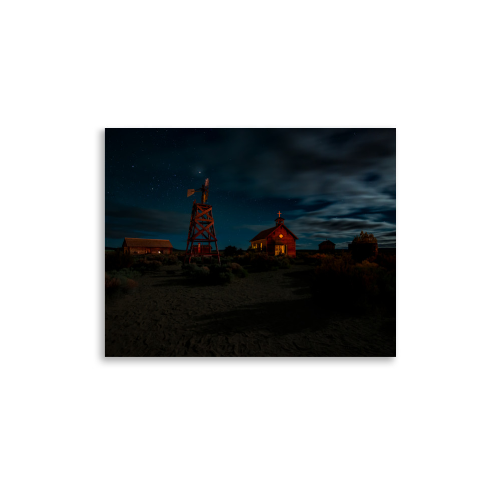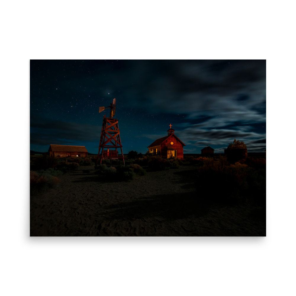 Starry Night Country Barn & Church – Premium Luster Photo Paper Poster (in)