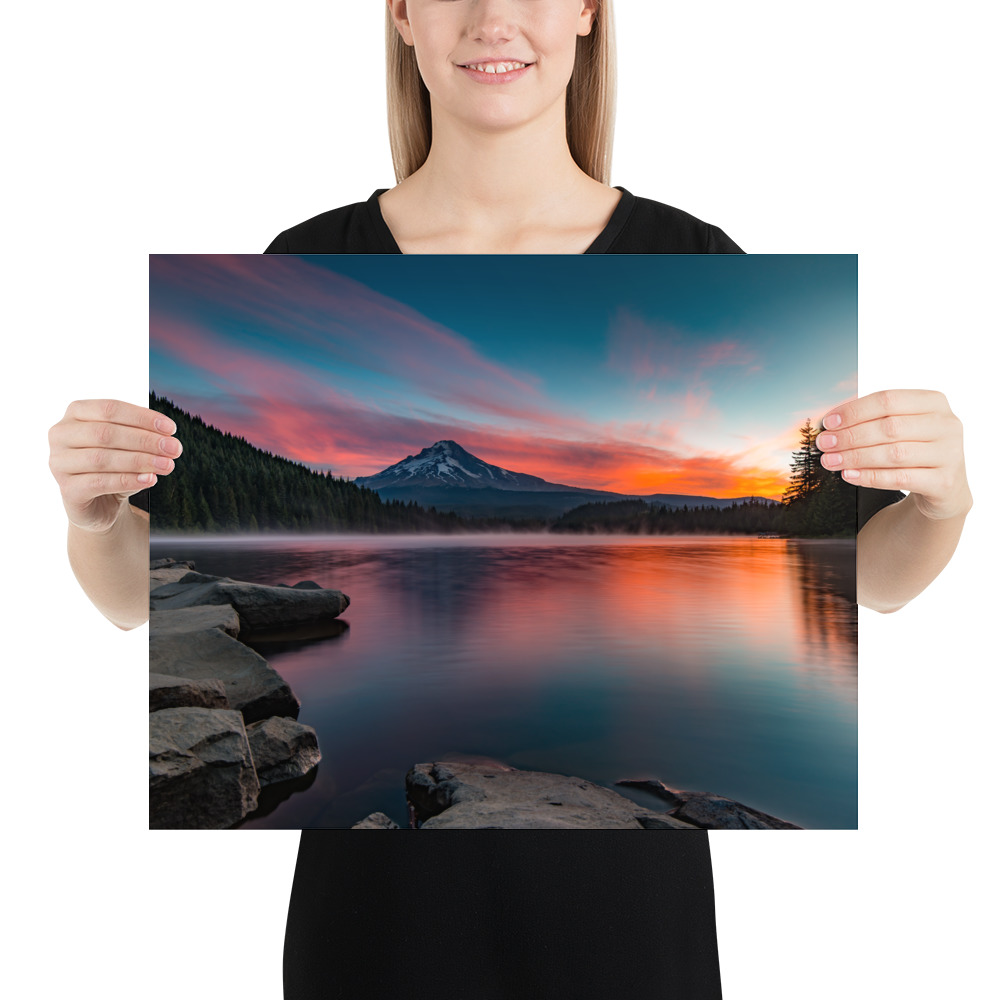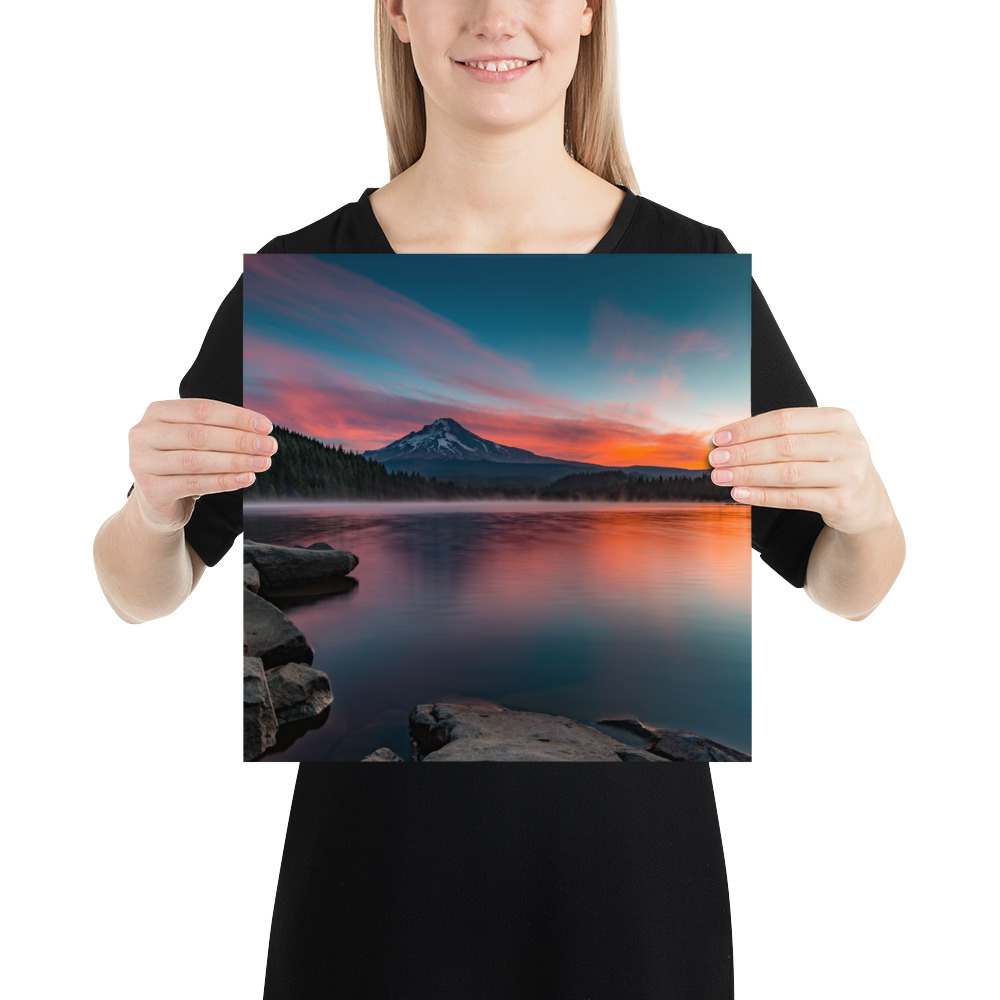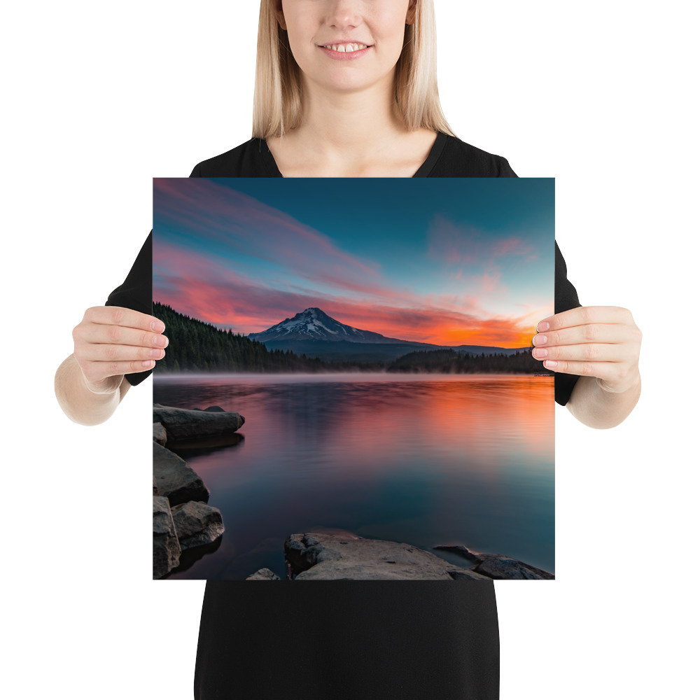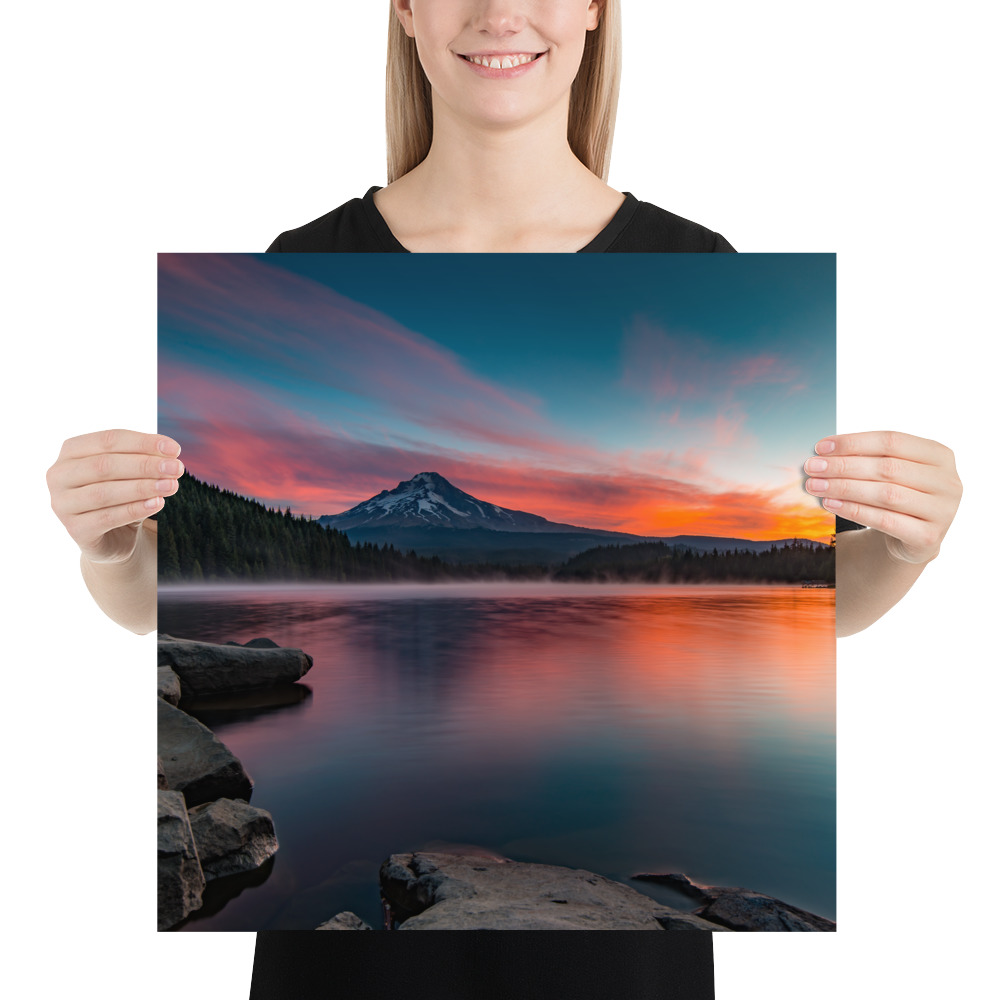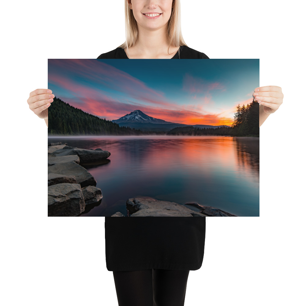 Sunrise at Trillium lake, Mt. Hood, Oregon – Enhanced Matte Paper Poster(in)