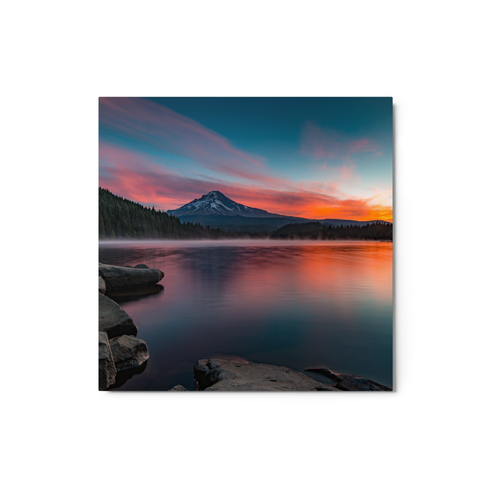 Sunrise at Trillium lake, Mt. Hood, Oregon – Glossy Metal Print