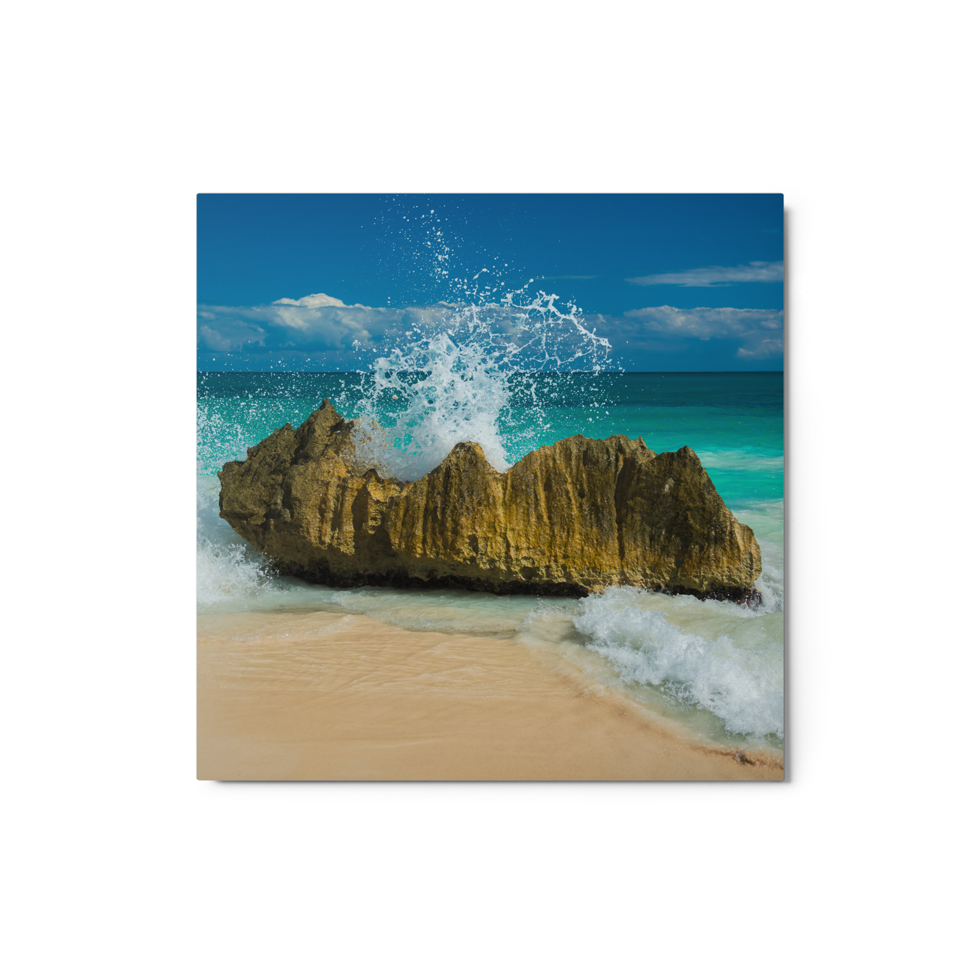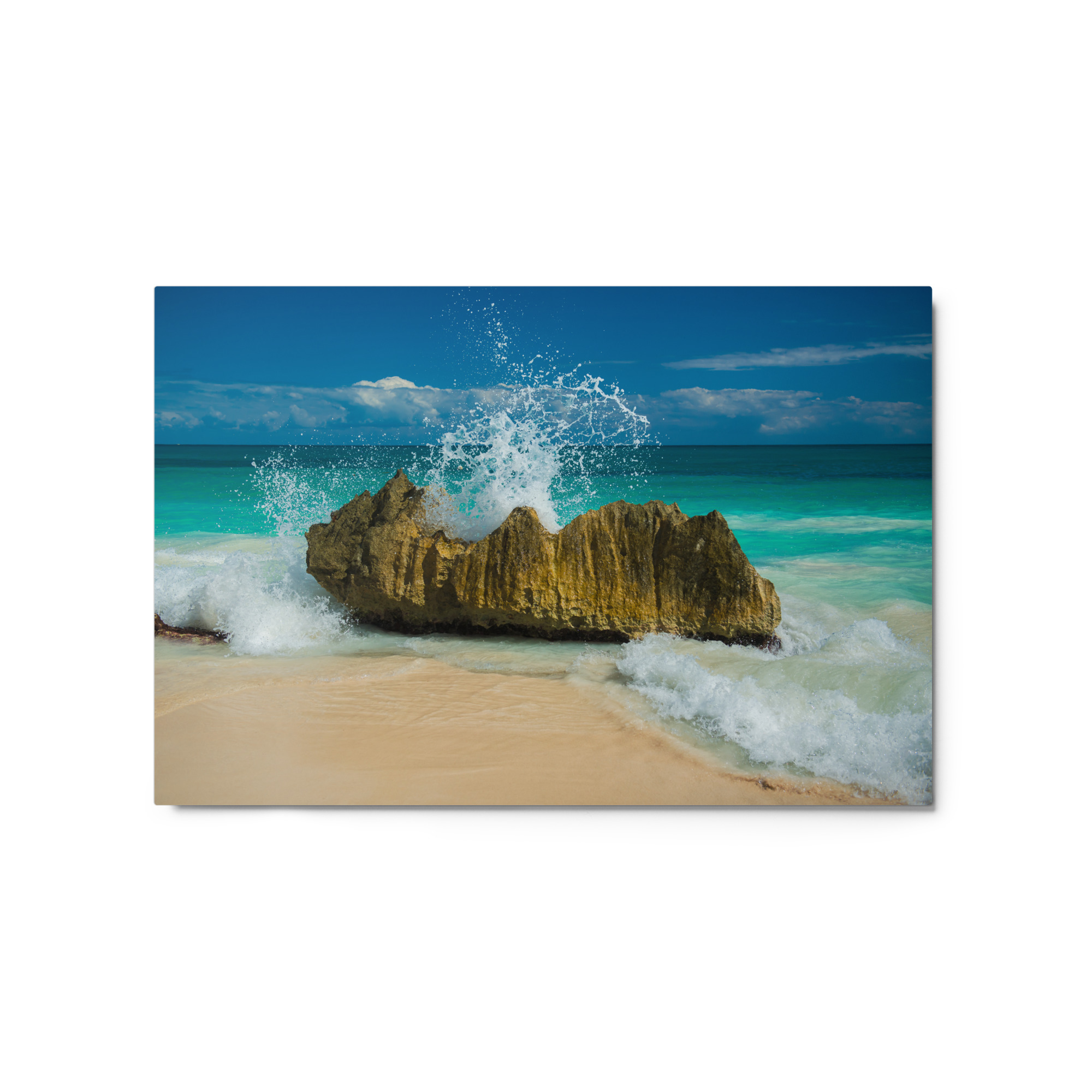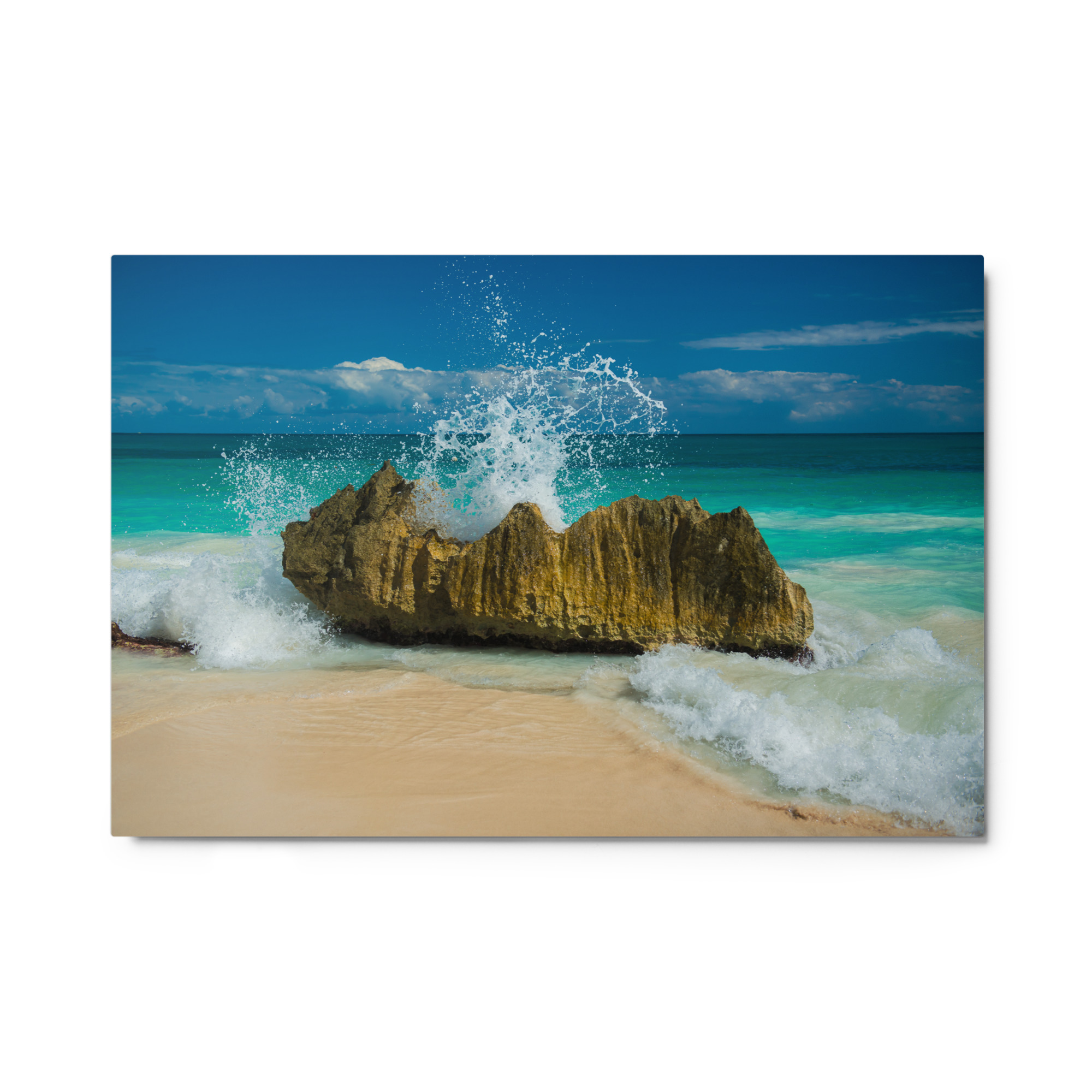 Categories: Glossy Metal Print, Tropical Waves on Rocks-Cancun, Mexico