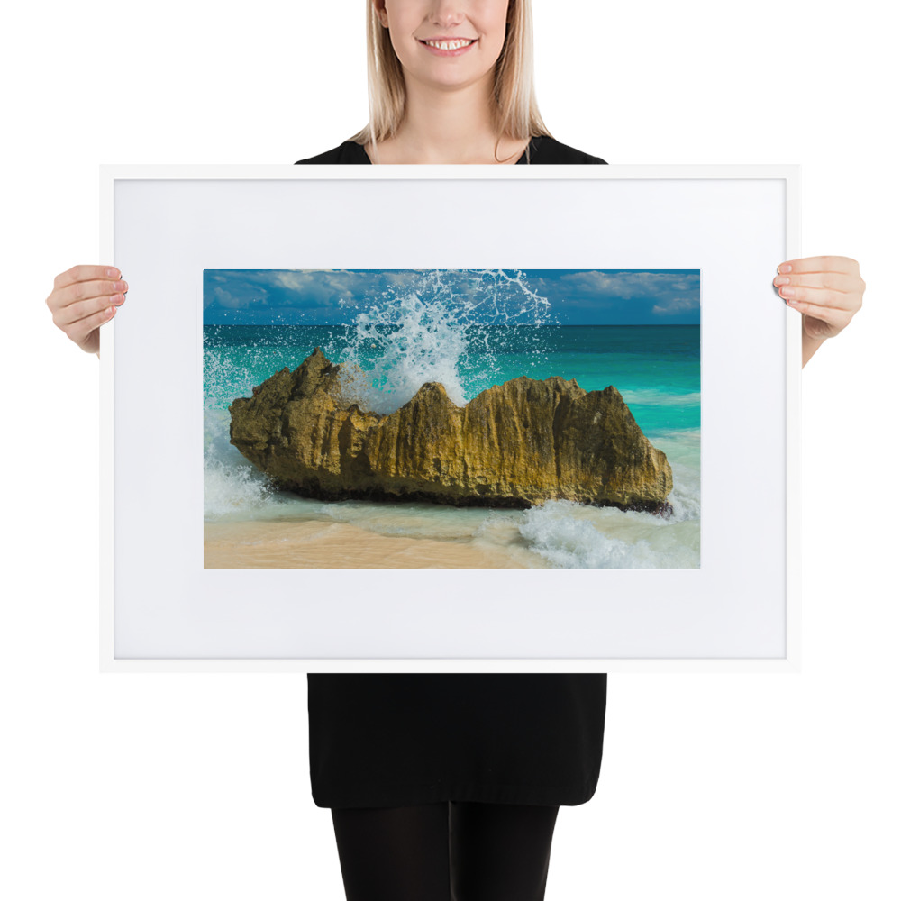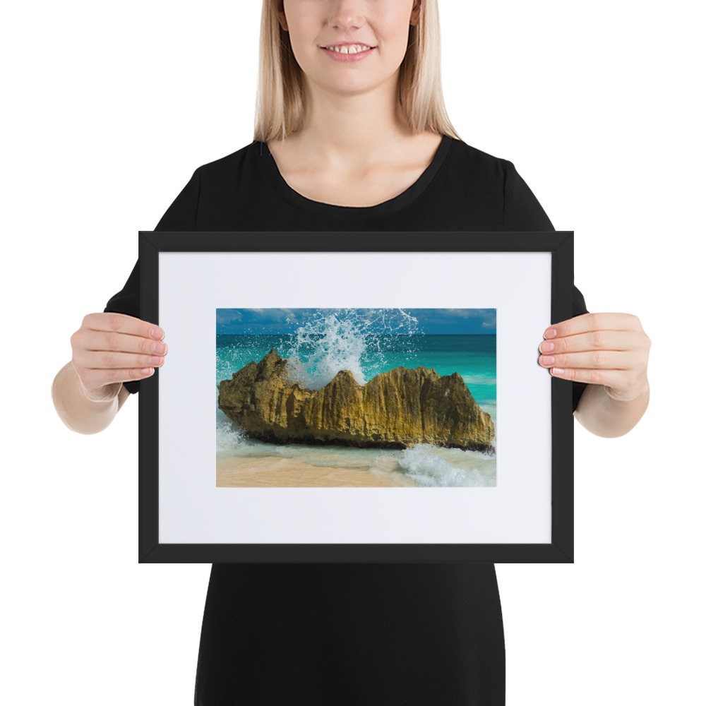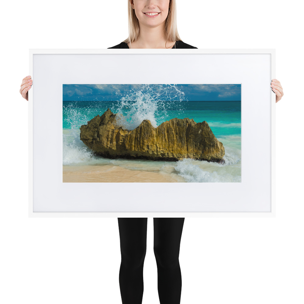 Tropical Waves on Rocks – Matte Paper Framed Poster With Mat (cm)