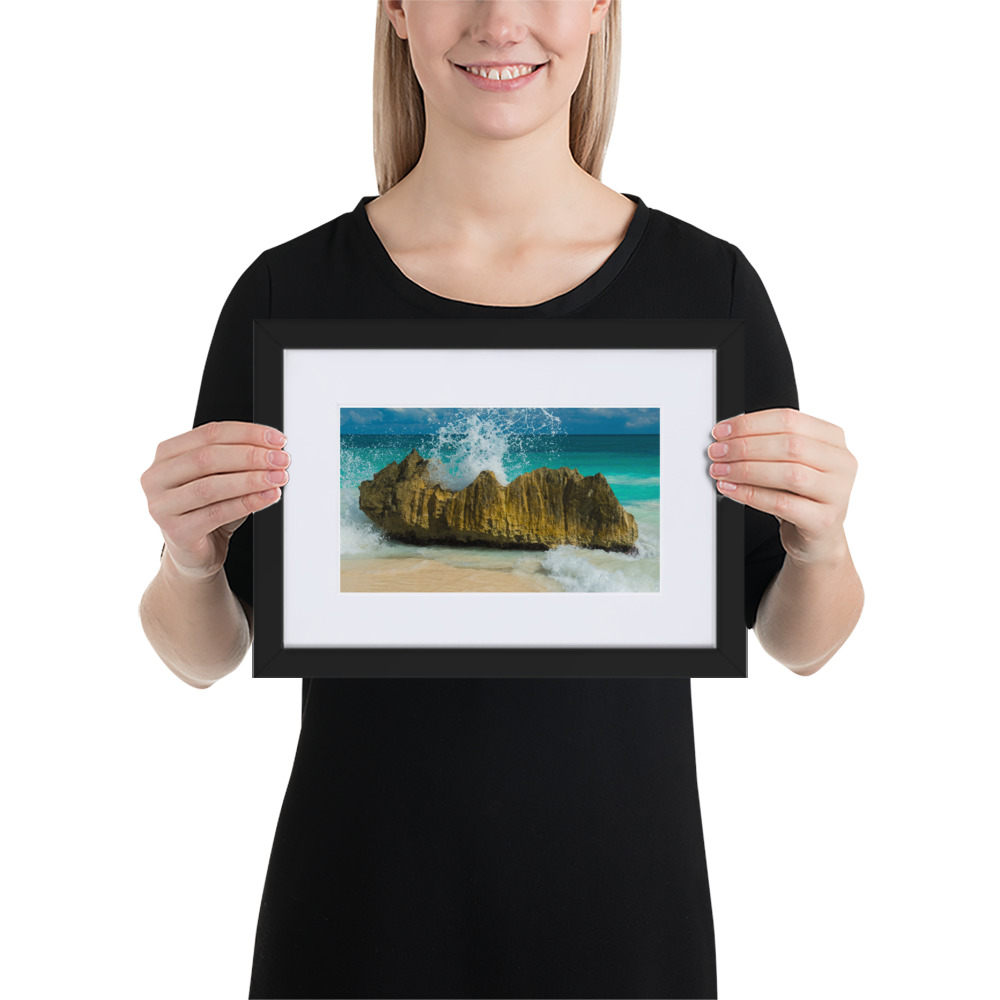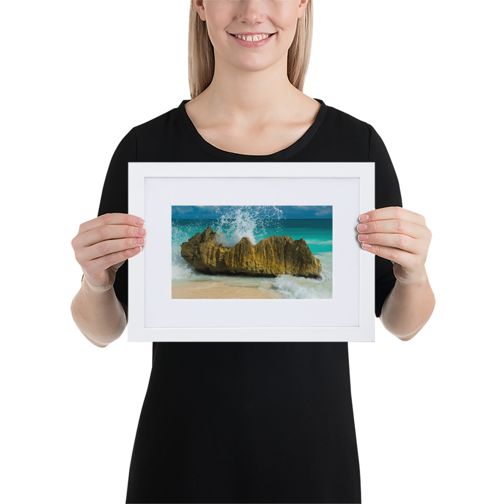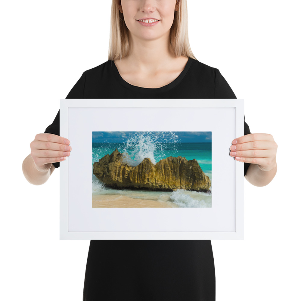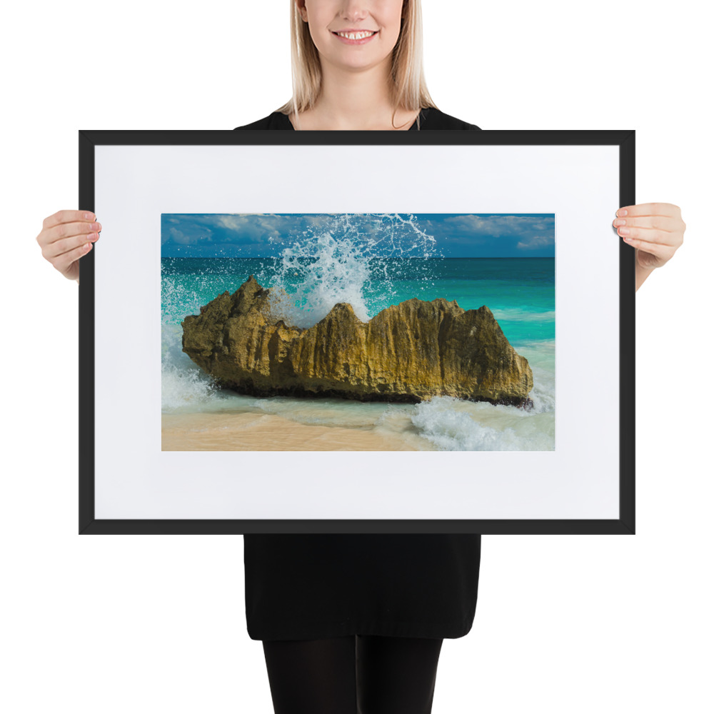 Tropical Waves on Rocks – Matte Paper Framed Poster With Mat (cm)